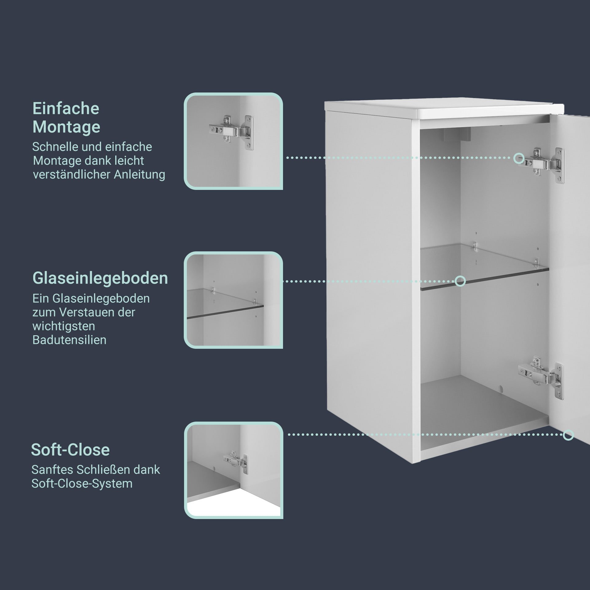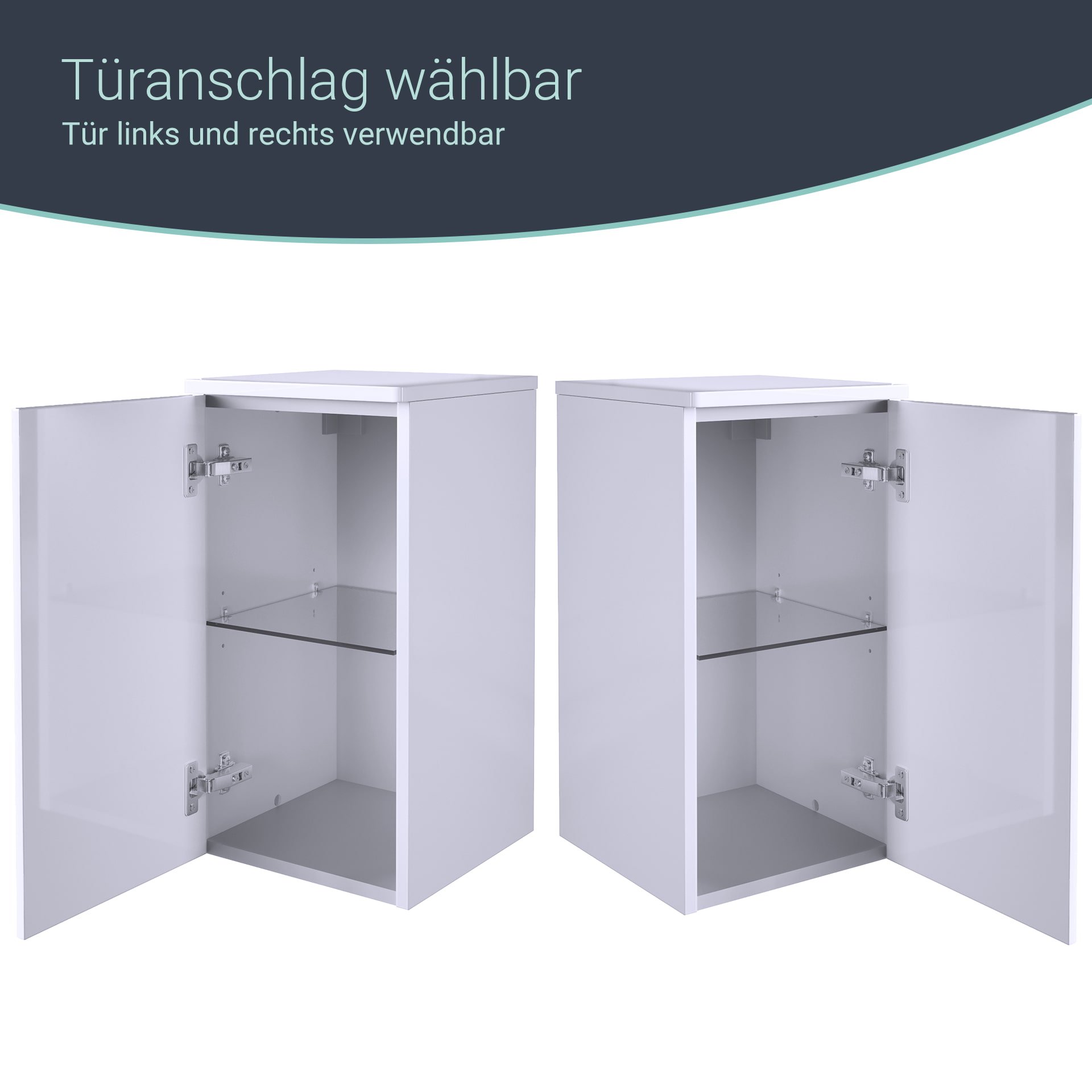 - Ausstattung: 1 Tür, 1 Glaseinlegeboden