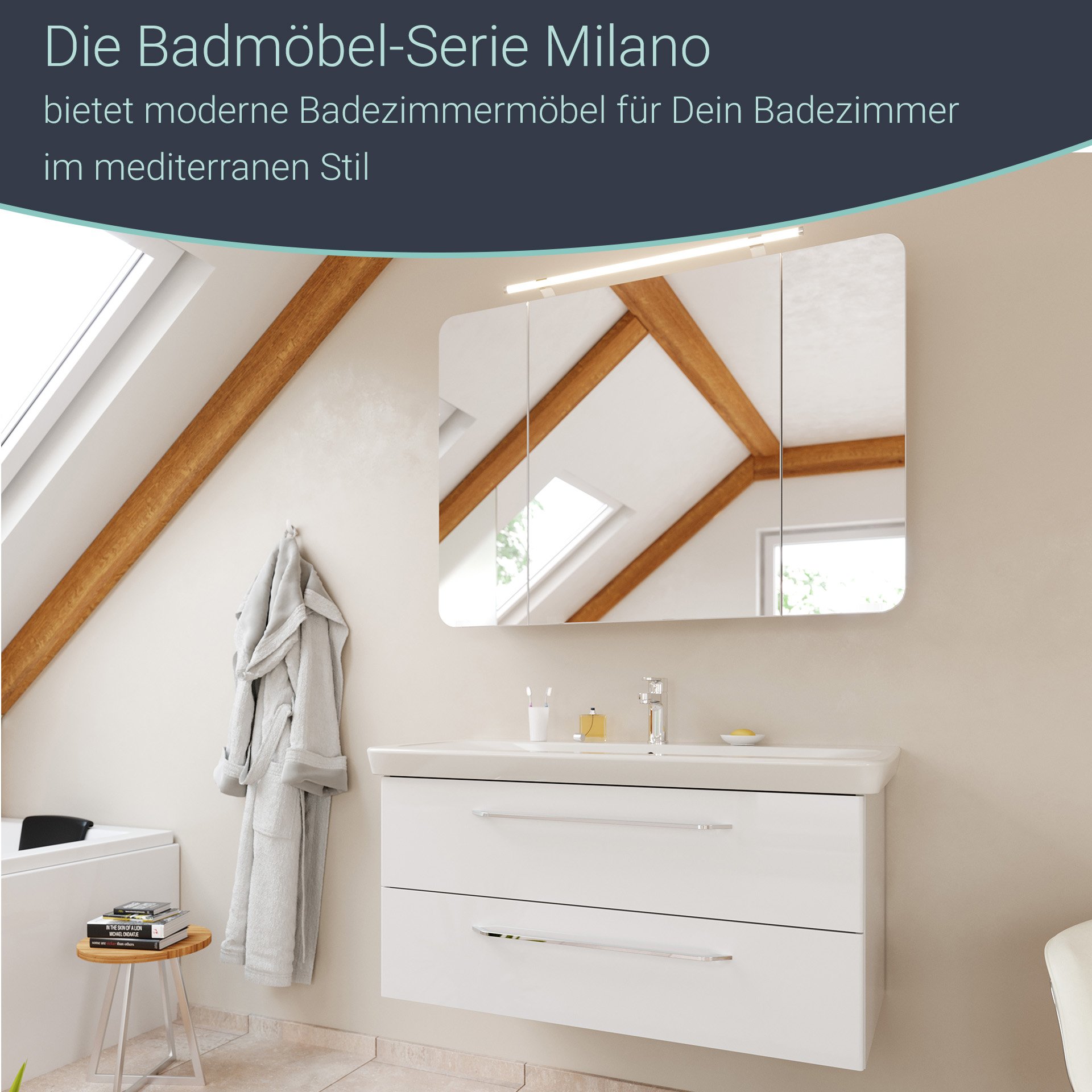 Hol Dir mediterranes Flair in Dein Badezimmer – mit dem 2-teiligen Badmöbel-Set aus der Serie MILANO von Fackelmann. Der weiße Waschbeckenunterschrank mit einer Breite von 100 cm passt optimal in Dein großes Bad. Ein echter Hingucker ist die weiß-glänzende Front. Zwei Schubladen bieten jede Menge Stauraum für Badutensilien, Handtücher und Co. Endlich perfekte Ordnung im Badezimmer! Chromglänzende Griffe heben die Hochwertigkeit des Schranks hervor. Dank des Soft-Close-Systems lassen sich beide Schubladen sanft schließen. Stilvoll fügt sich das weiße Design-Waschbecken aus Keramik auf den Unterschrank. Eine tiefe Waschmulde lässt Wasserspritzer da, wo sie hingehören. Die Möbel von Fackelmann werden mit viel Liebe zum Detail in Deutschland gefertigt. Eine leicht verständliche Aufbauanleitung hilft Dir beim Aufbau Deines zerlegten Badmöbel-Sets.