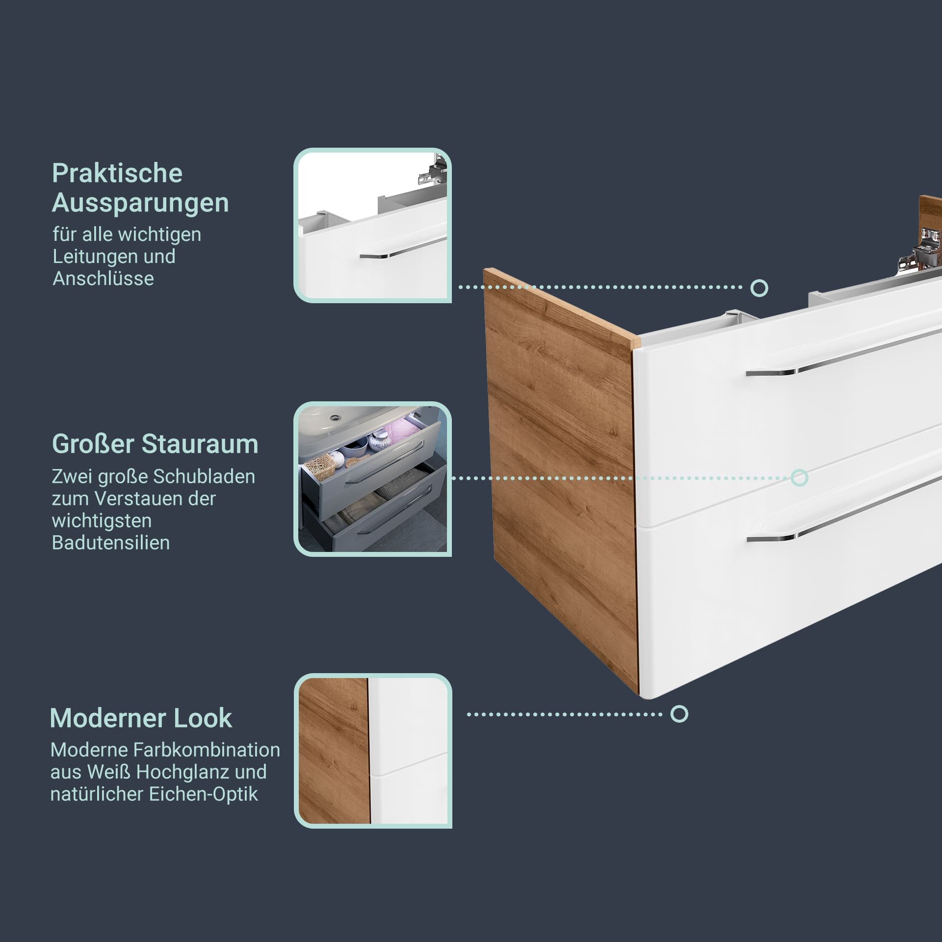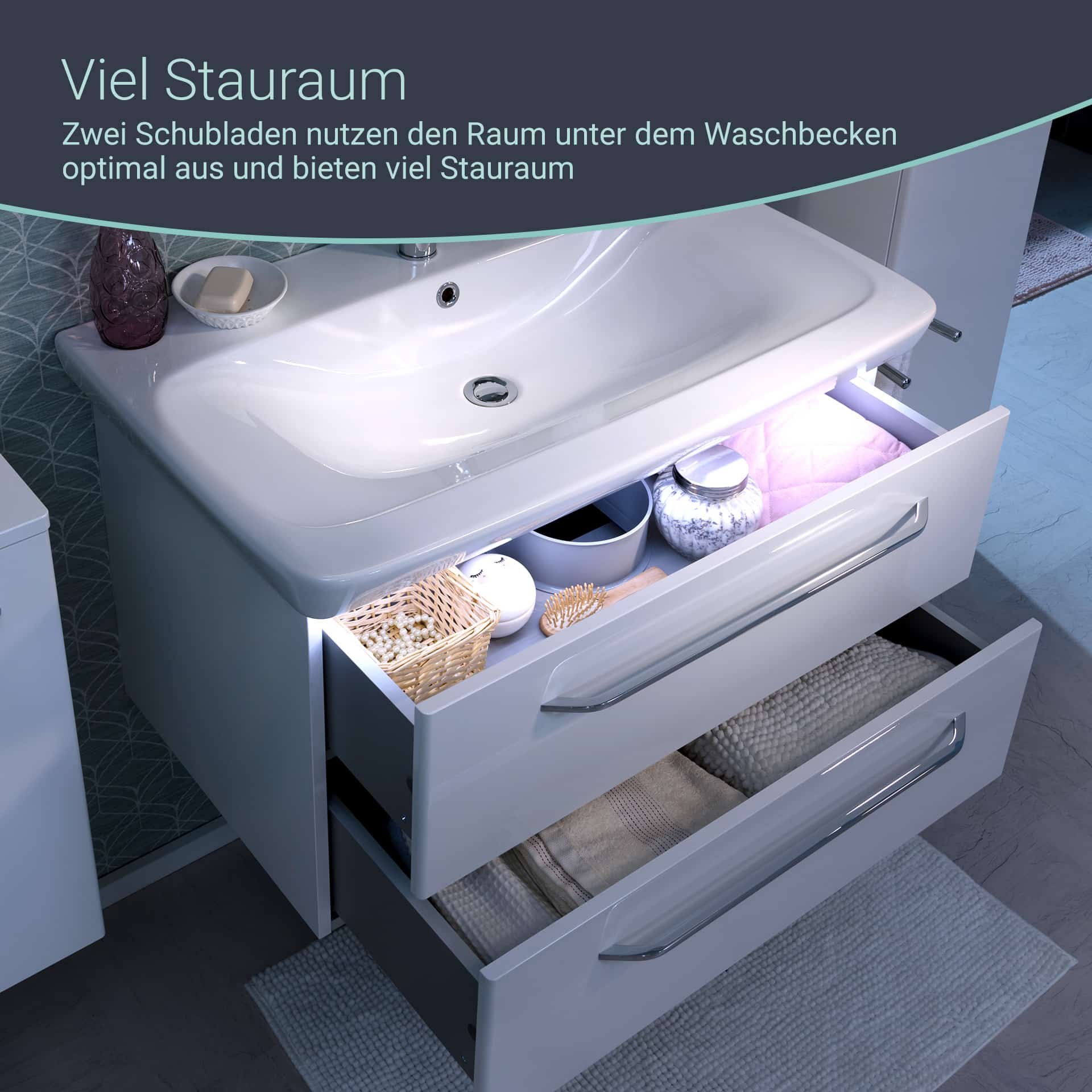 - Ausstattung: 2 Schubladen mit Soft-Close-System, 2 Griffe Chrom glänzend