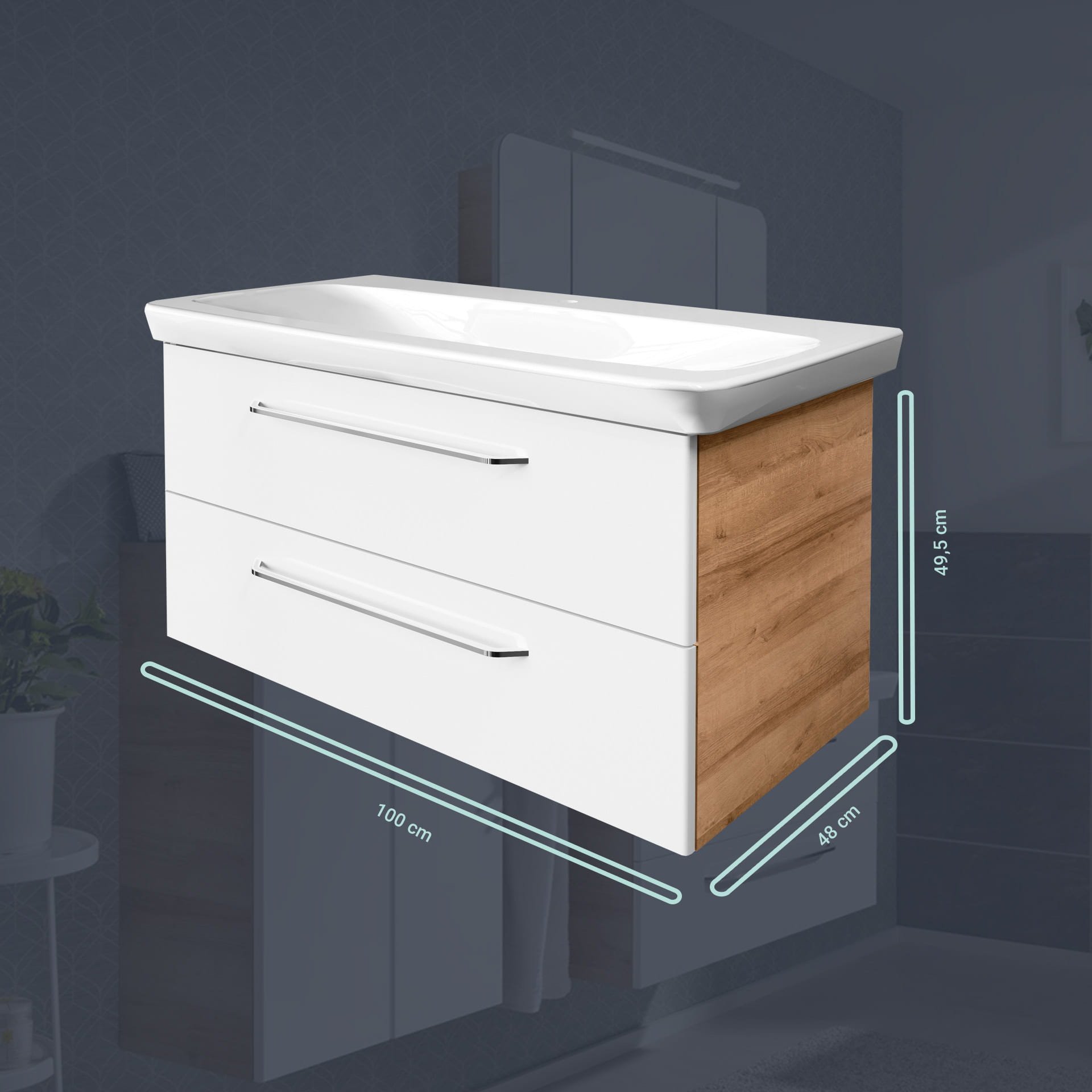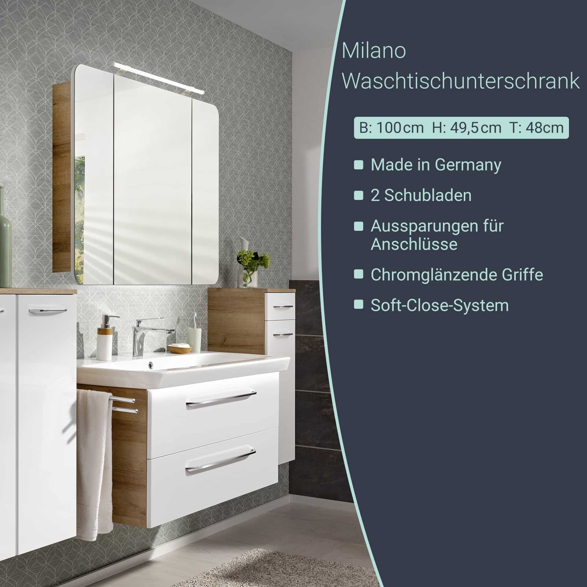 Fackelmann MILANO Waschbeckenunterschrank 100 cm, Braun hell/Weiß