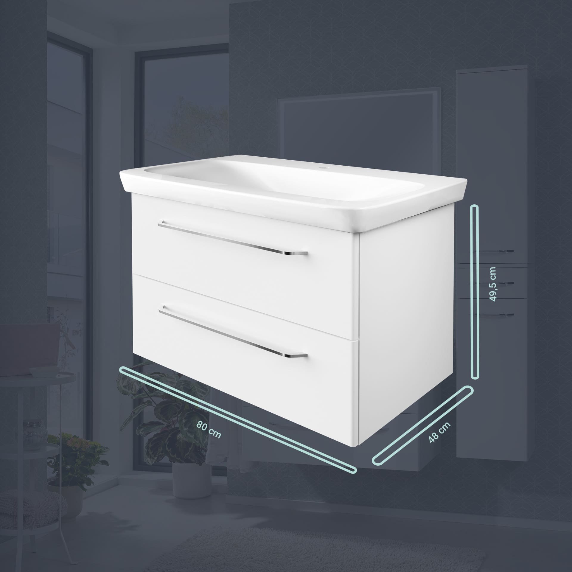 - Ausstattung: 2 Schubladen mit Soft-Close-System, chromglänzende Griffe