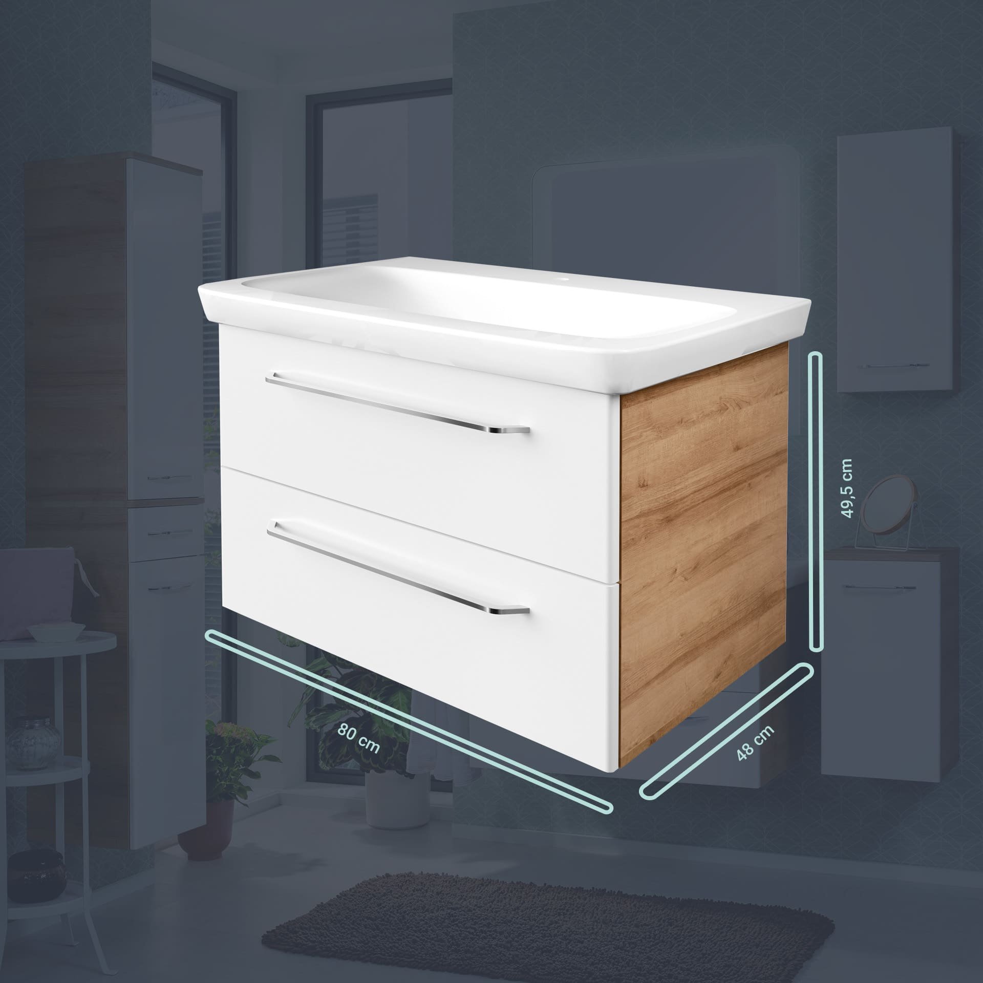 Fackelmann MILANO Waschbeckenunterschrank 80 cm breit, Braun hell/Weiß