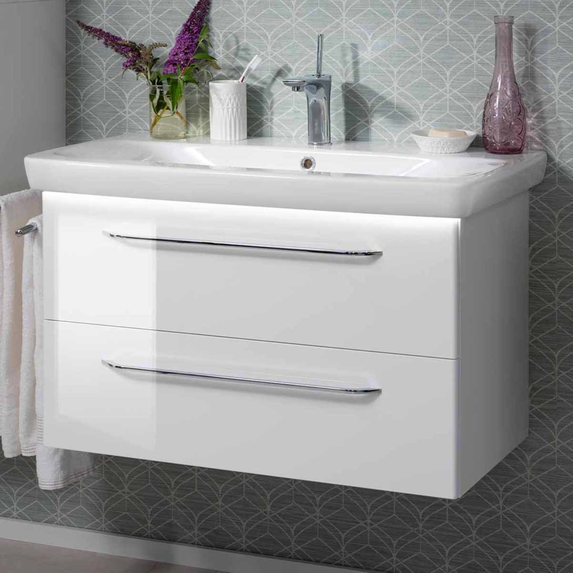 Hol Dir mediterranes Flair in Dein Badezimmer – mit dem 2-teiligen Badmöbel-Set aus der Serie MILANO von Fackelmann. Der weiße Waschbeckenunterschrank mit einer Breite von 80 cm passt optimal in Dein großes Bad. Ein echter Hingucker ist die weiß-glänzende Front. Zwei Schubladen bieten Dir jede Menge Stauraum für Badutensilien, Handtücher und Co. Endlich perfekte Ordnung im Badezimmer! Chromglänzende Griffe heben die Hochwertigkeit des Schranks hervor. Dank des Soft-Close-Systems lassen sich beide Schubladen sanft schließen. Stilvoll fügt sich das weiße Design-Waschbecken aus Keramik auf den Unterschrank. Eine tiefe Waschmulde lässt Wasserspritzer da, wo sie hingehören. Die Möbel von Fackelmann werden mit viel Liebe zum Detail in Deutschland gefertigt. Eine leicht verständliche Aufbauanleitung hilft Dir beim Aufbau Deines zerlegten Badmöbel-Sets.