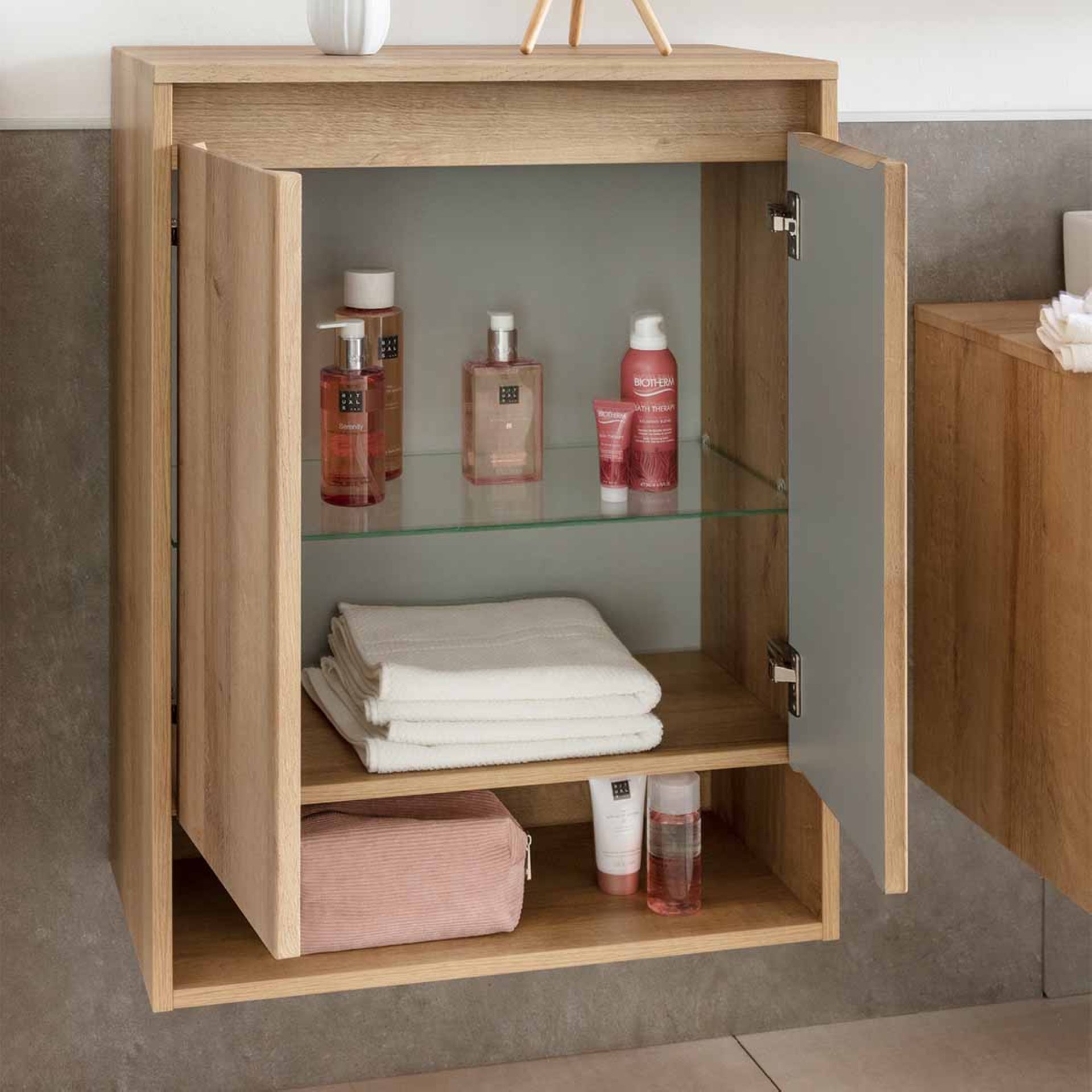 Fackelmann NATURA Doppel Midischrank 60,5 cm breit, Braun hell