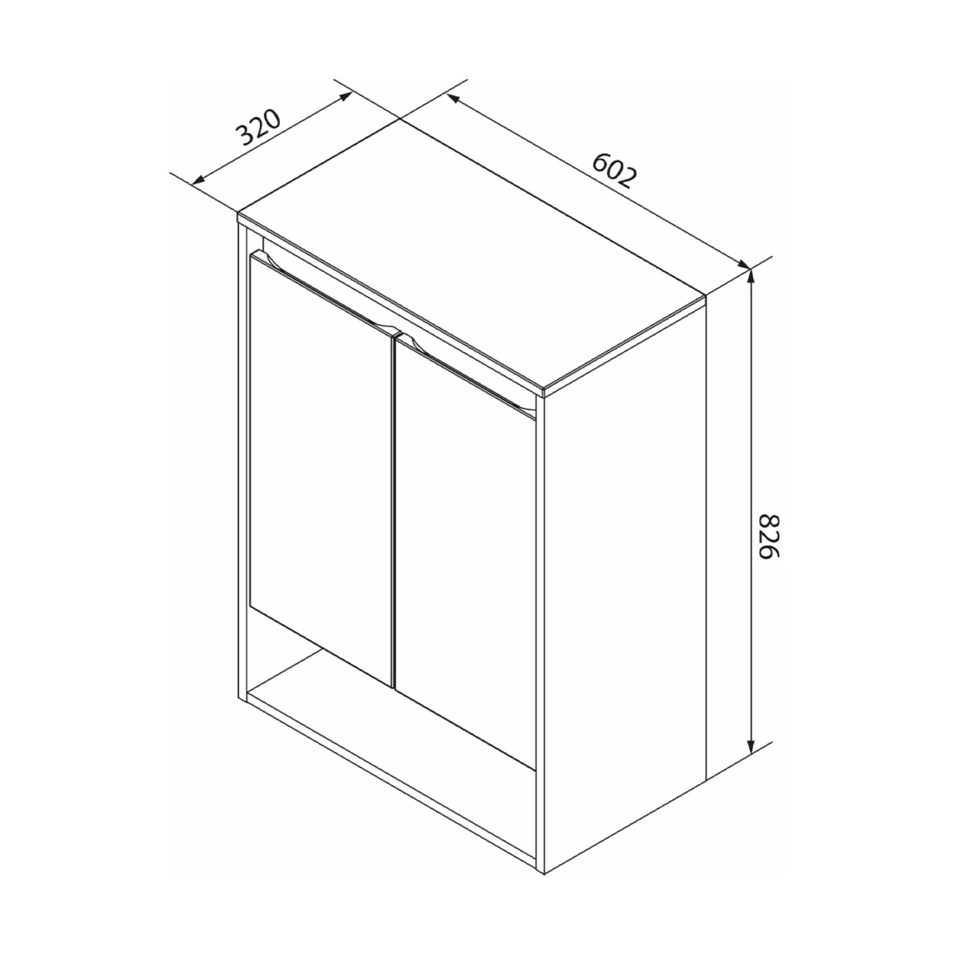 - Maße: 60 cm Breite, 83 cm Höhe und 32 cm Tiefe