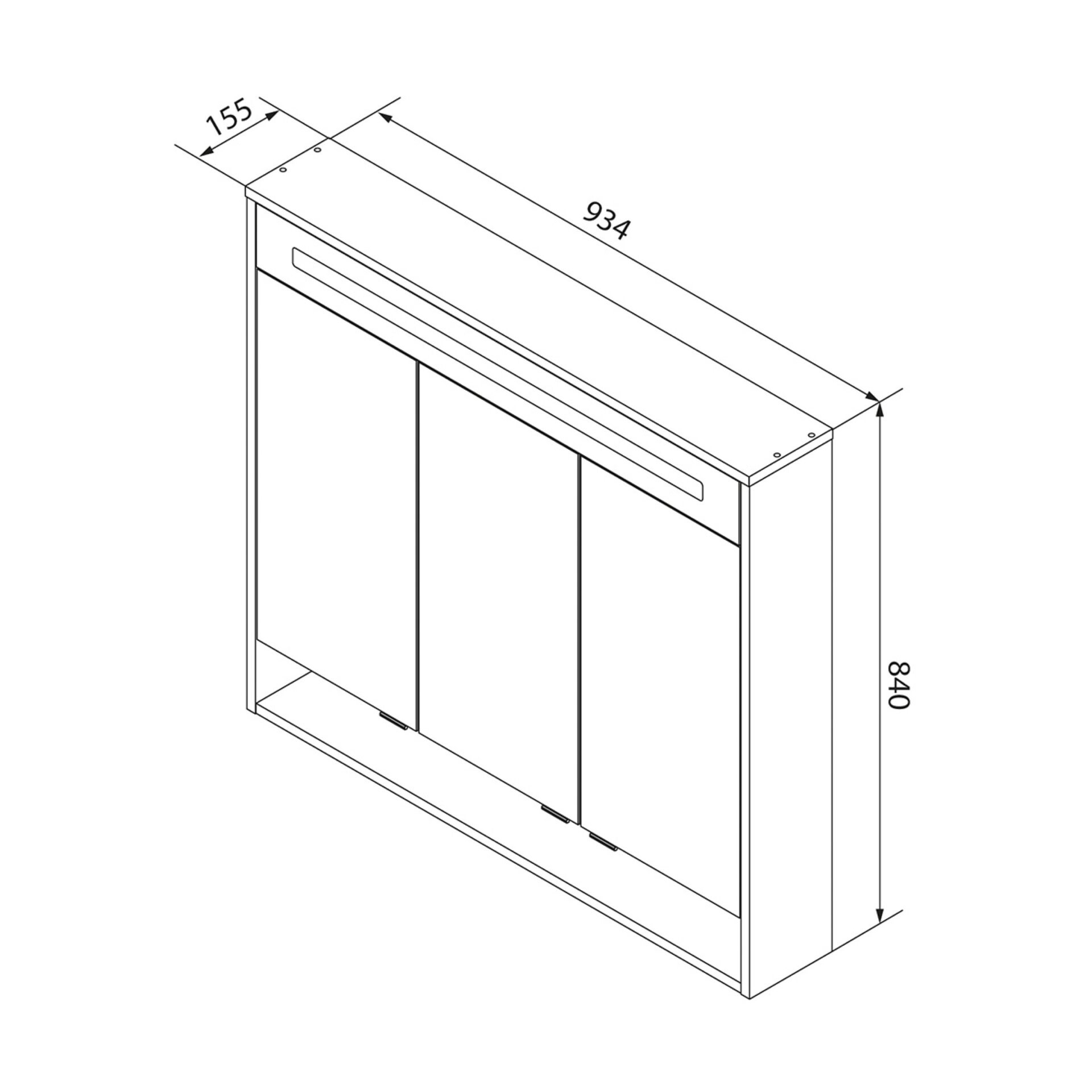 - Ausstattung: 3 Türen, linke und rechte Tür mit Innenspiegel, 4 Glasböden, LED Leuchte 8,4 Watt, gedämpfte Scharniere, Anschlusskabel ca. 85 cm, Rückwand silbergrau