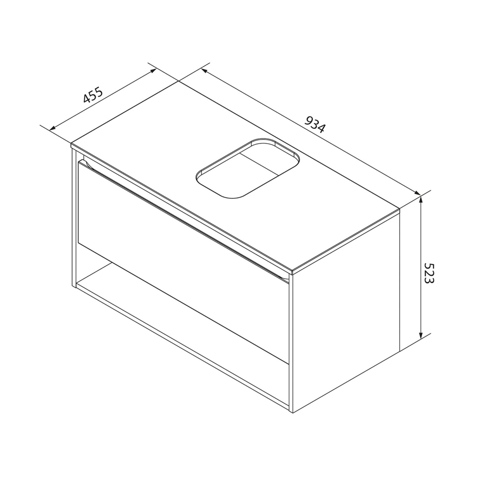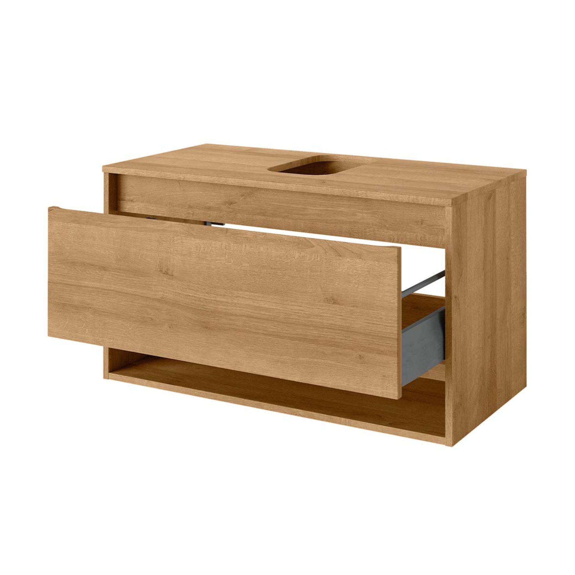 - Besonderheit: grifflos, Innenleben anthrazit, 1 offenes Ablagefach, mit Ausschnitt für Becken (Art.Nr. 79699, 79700, 79701)