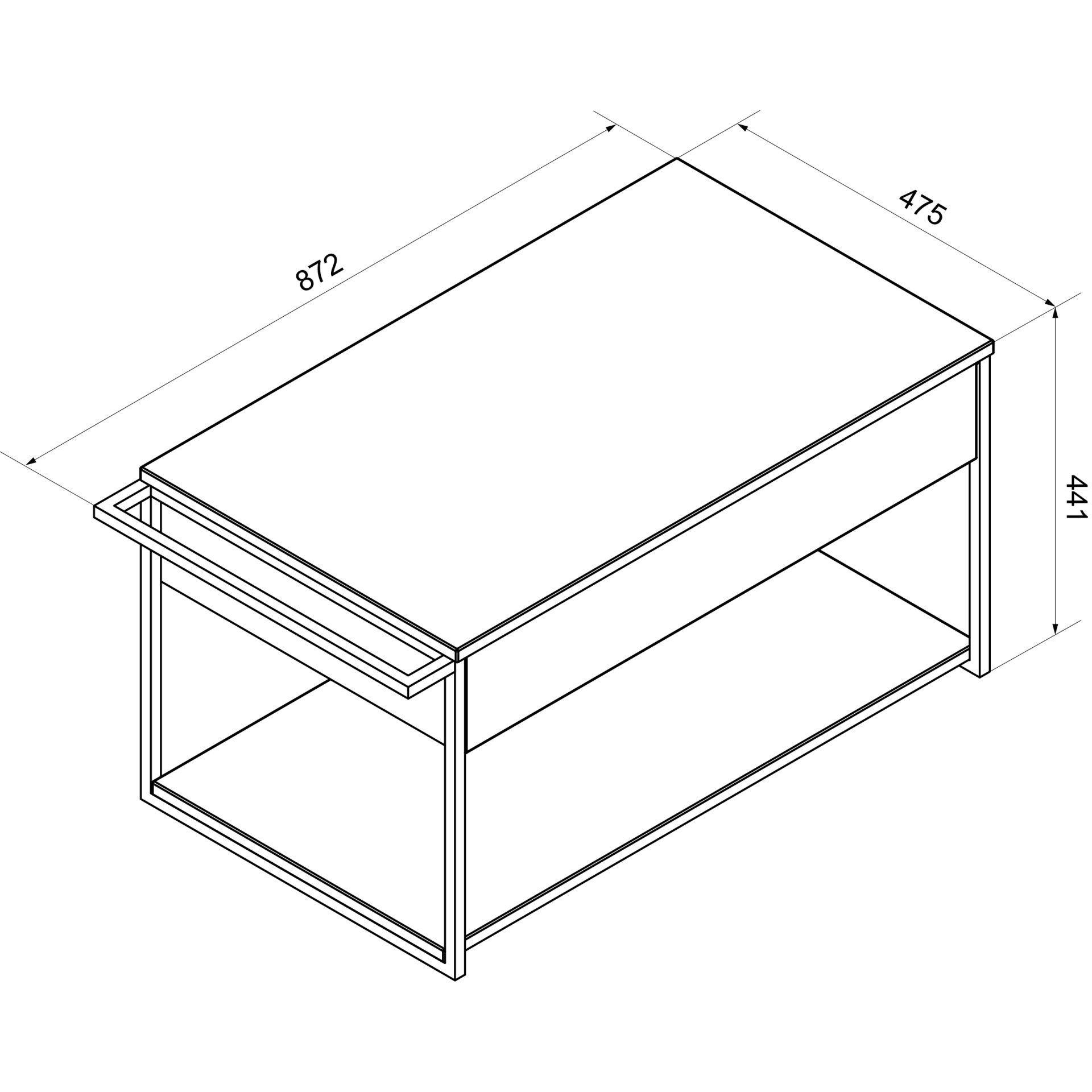 - Ausstattung: 1 Schublade mit Push-to-open-Technik, BxHxT: 76,5 x 13 x 37,5 cm, Metallrahmen Schwarz, Vierkant