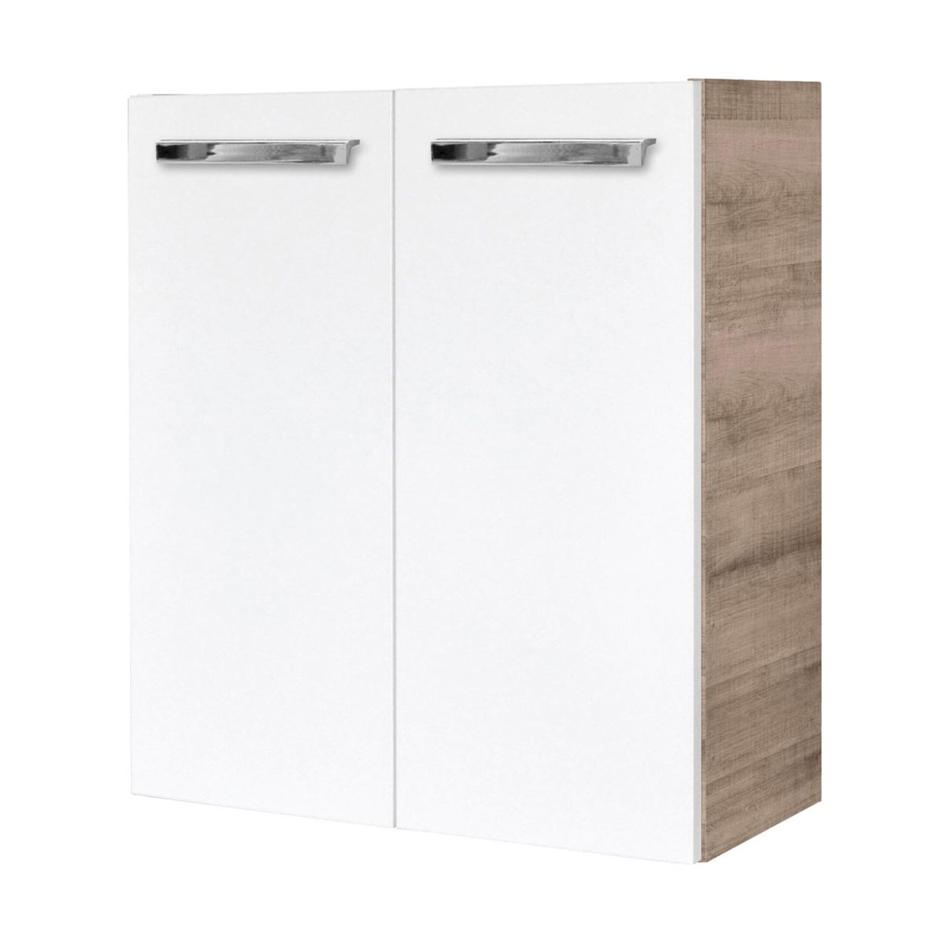 Fackelmann SBC A-VERO Waschbeckenunterschrank 55 cm, Braun hell/Weiß, 2 Türen