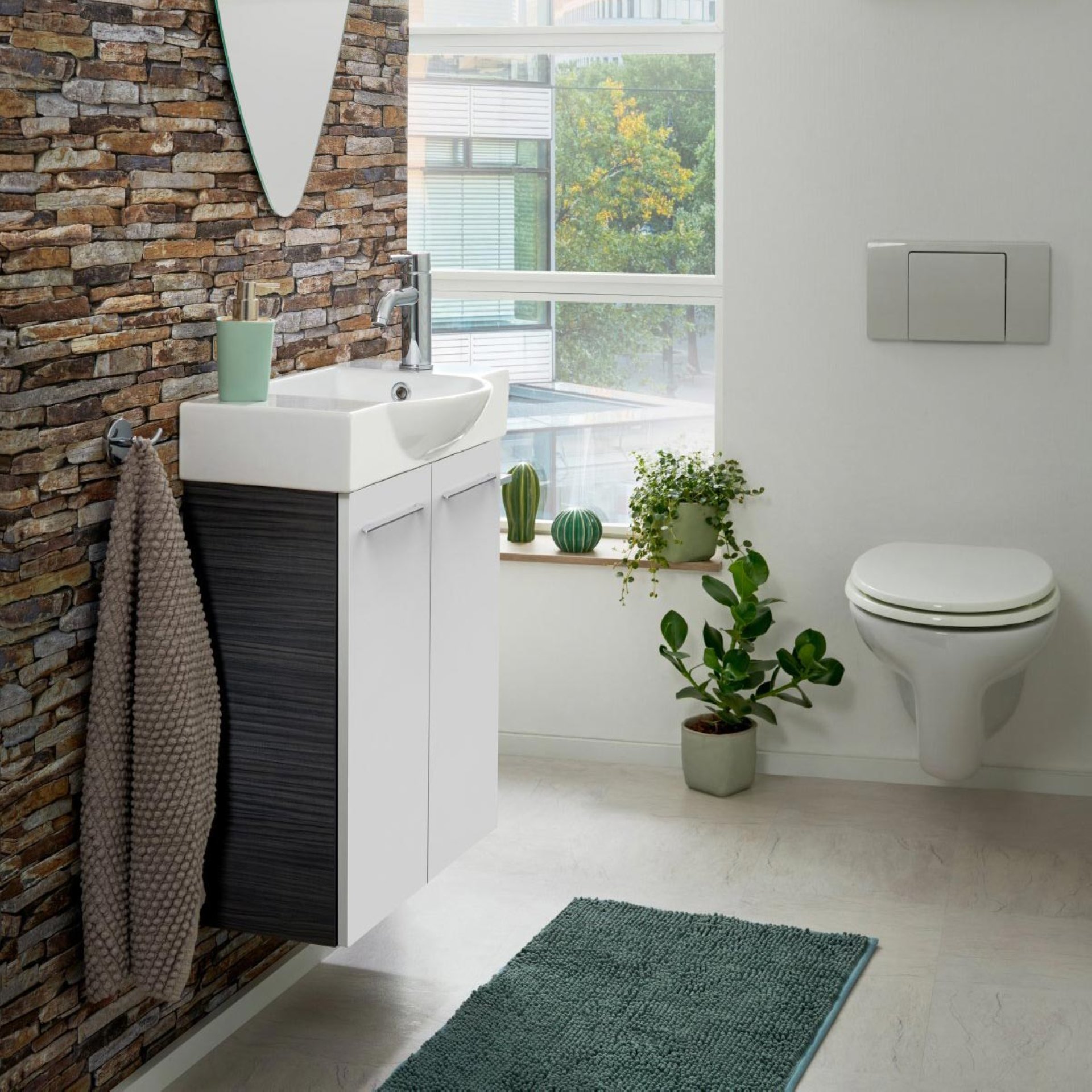 Die perfekte Lösung für Dein Gästebad: der Waschbeckenunterschrank SBC B.PERFEKT von Fackelmann bringt Design und Ordnung in die Badeinrichtung. Die Kombination aus einem anthrazitfarbenen Korpus im Design der Eiche und einer weiß-glänzenden Front erzeugt eine angenehme Atmosphäre. Aufgrund seiner Breite von nur 52 cm ist der Badezimmerschrank sehr schmal und damit ideal für kleine Bäder und Gäste-WCs geeignet. Platzprobleme im kleinen Badezimmer gehören ab sofort der Vergangenheit an, denn der Fackelmann SBC B. PERFEKT Waschbeckenunterschrank 55 cm, Anthrazit Holzoptik/Weiß, 2 Türen nutzt den vorhandenen Raum unter dem Waschbecken optimal aus und bietet auf einem Einlageboden Stauraum für Badutensilien und Accessoires. Der Schrank verfügt über zwei Türen, welche sich aufgrund der gedämpften Scharniere besonders sanft schließen lässt. Dank der vormontierten Lieferung ist der Schrank leicht in Deinem Bad integriert. Das dazu passende Waschbecken ist aus Keramik (Art.Nr. 82392 oder 82382). Der Waschtisch ist nicht im Lieferumfang enthalten und separat hier bei BadeDu erhältlich. Der Fackelmann SBC B. PERFEKT Waschbeckenunterschrank 55 cm, Anthrazit Holzoptik/Weiß, 2 Türen wird mit viel Liebe zum Detail in Deutschland hergestellt.