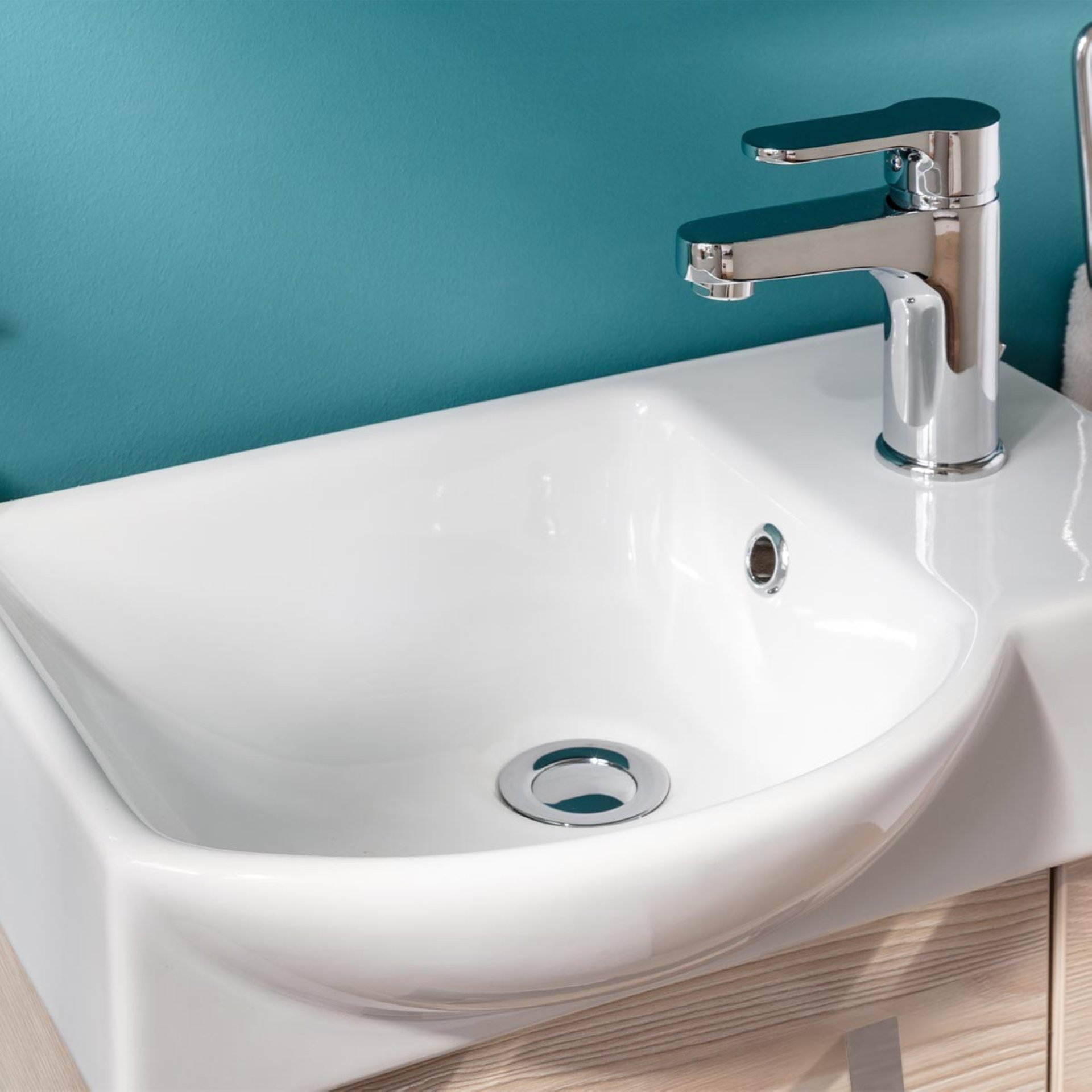 - Ausführung: Hahnloch rechts, Waschbeckenmulde links
