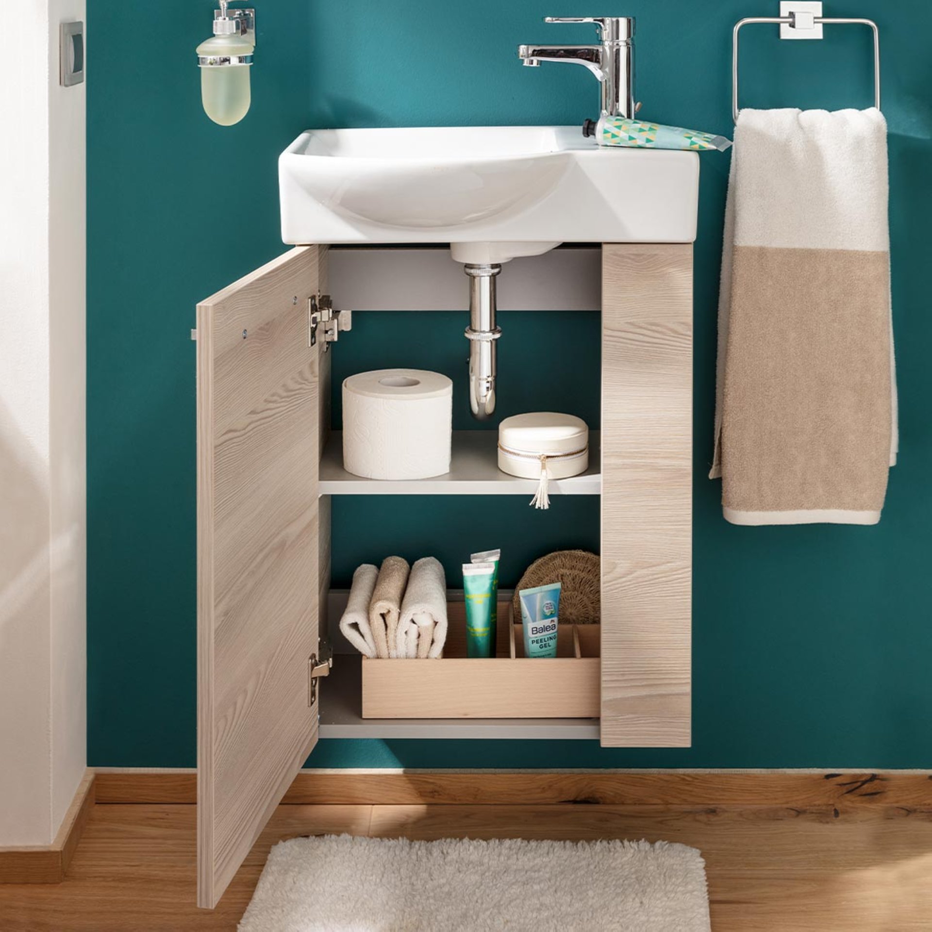 Fackelmann SBC B.CLEVER Gäste WC Waschtisch Set 45 cm breit, Braun hell, Waschbecken Keramik Weiß, Türanschlag links