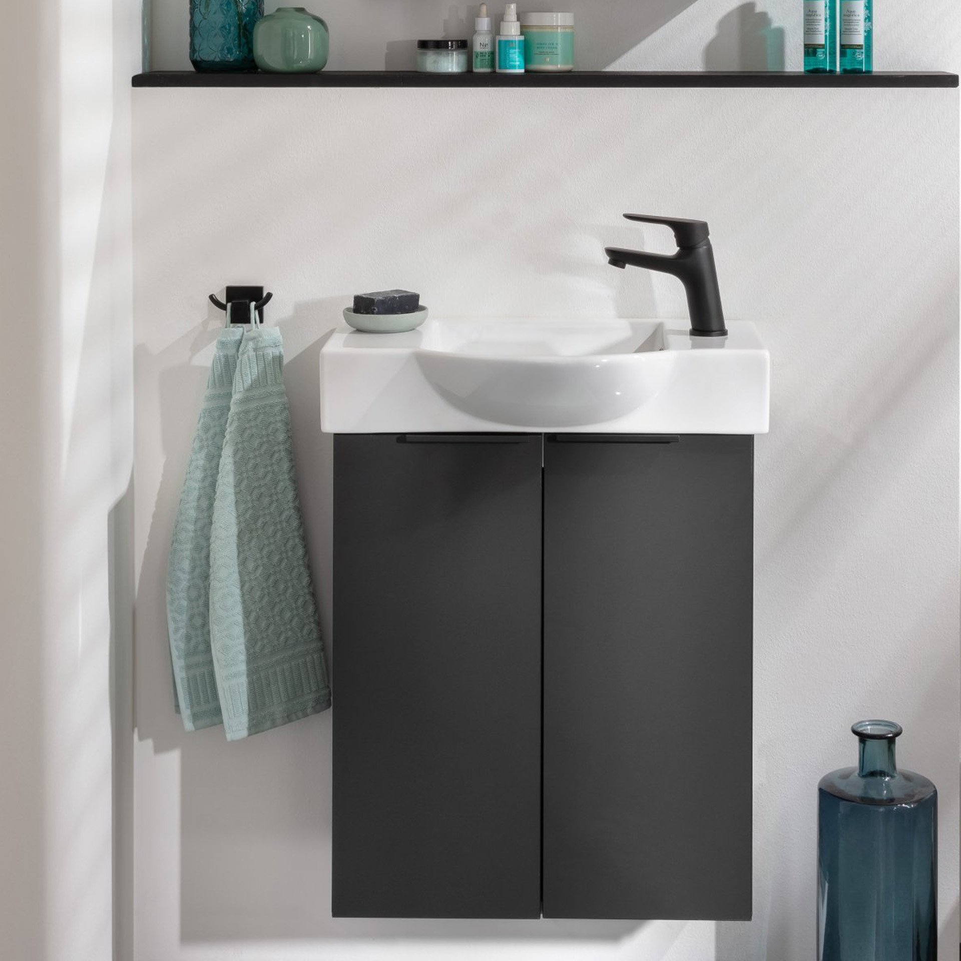 Fackelmann SBC B.PARIS Gäste WC Waschtisch Set 55 cm breit, Schwarz matt, Waschbecken Keramik Weiß, Hahnloch rechts