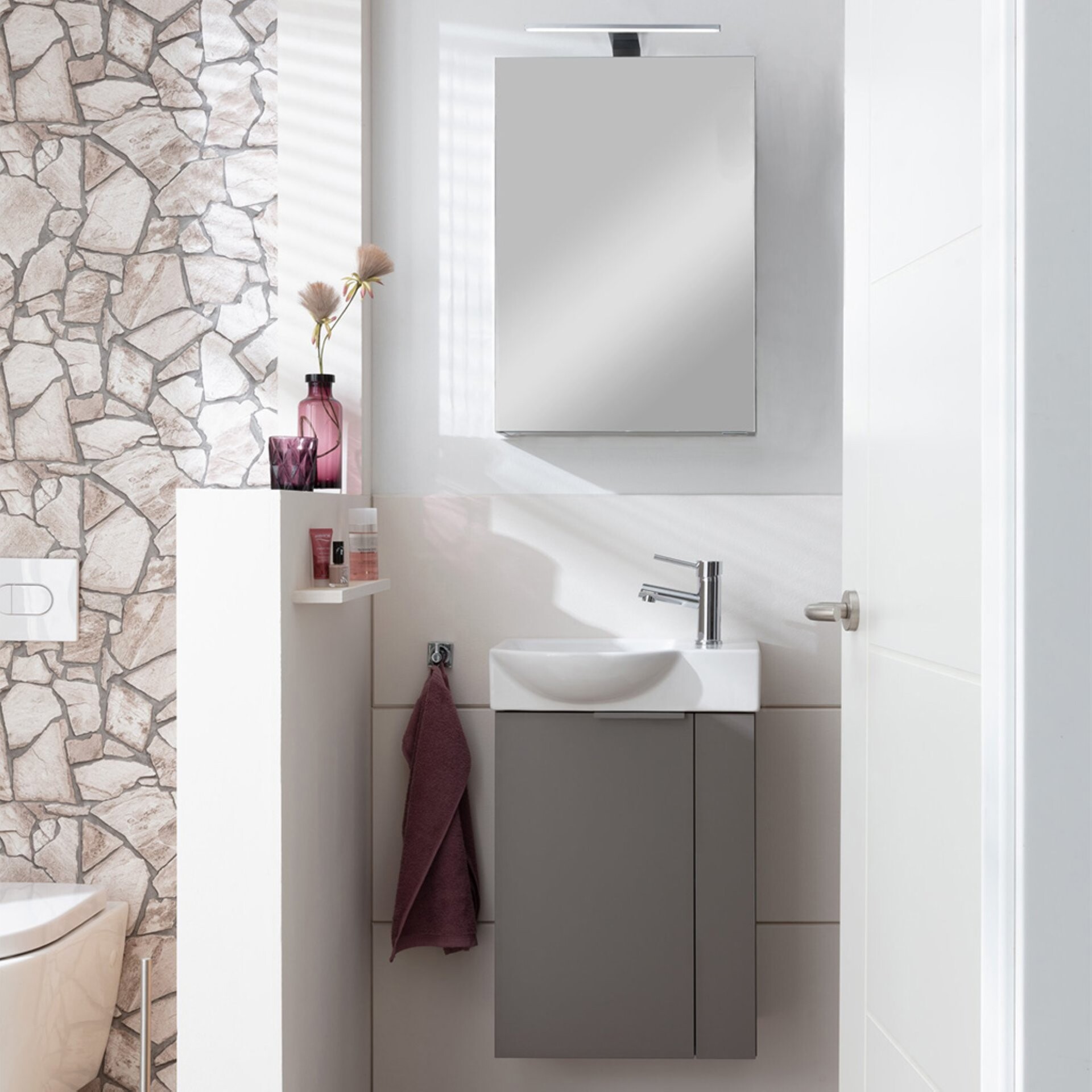 Fackelmann SBC B.PARIS Gäste WC Waschtisch Set mit Spiegelschrank 45 cm breit, Grau, Türanschlag links