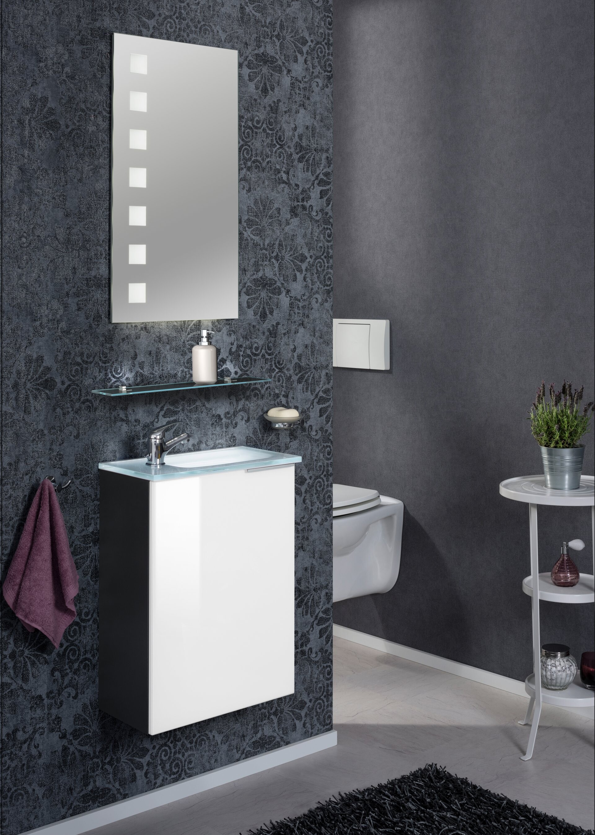 Fackelmann SBC KARA Gäste WC Set 2-teilig 45cm, Weiß/Anthrazit, links, Glas Weiß