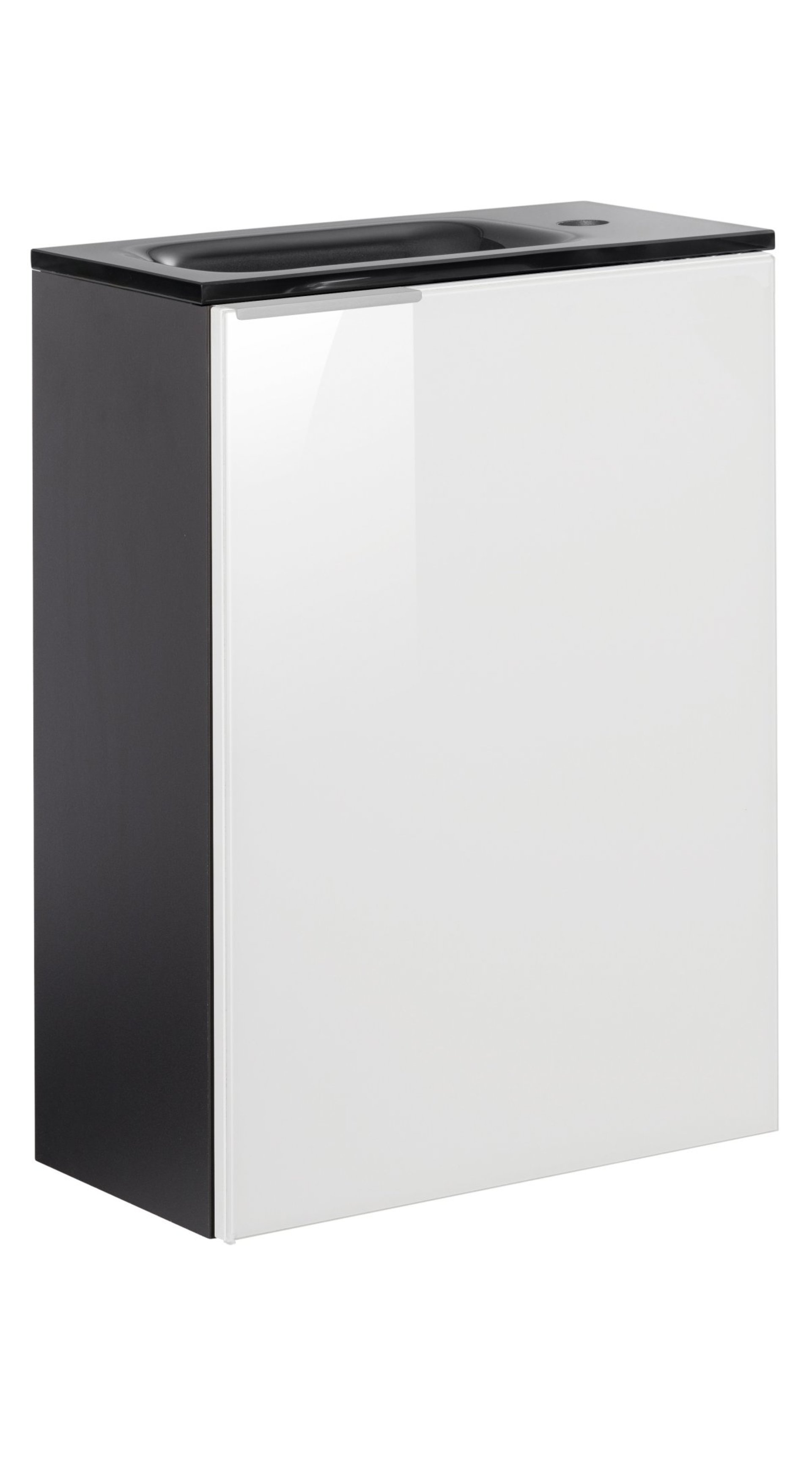 Fackelmann SBC KARA Gäste WC Waschtisch Set 45 cm breit, Weiß/Anthrazit, Waschbecken Glas Anthrazit, Türaschlag rechts