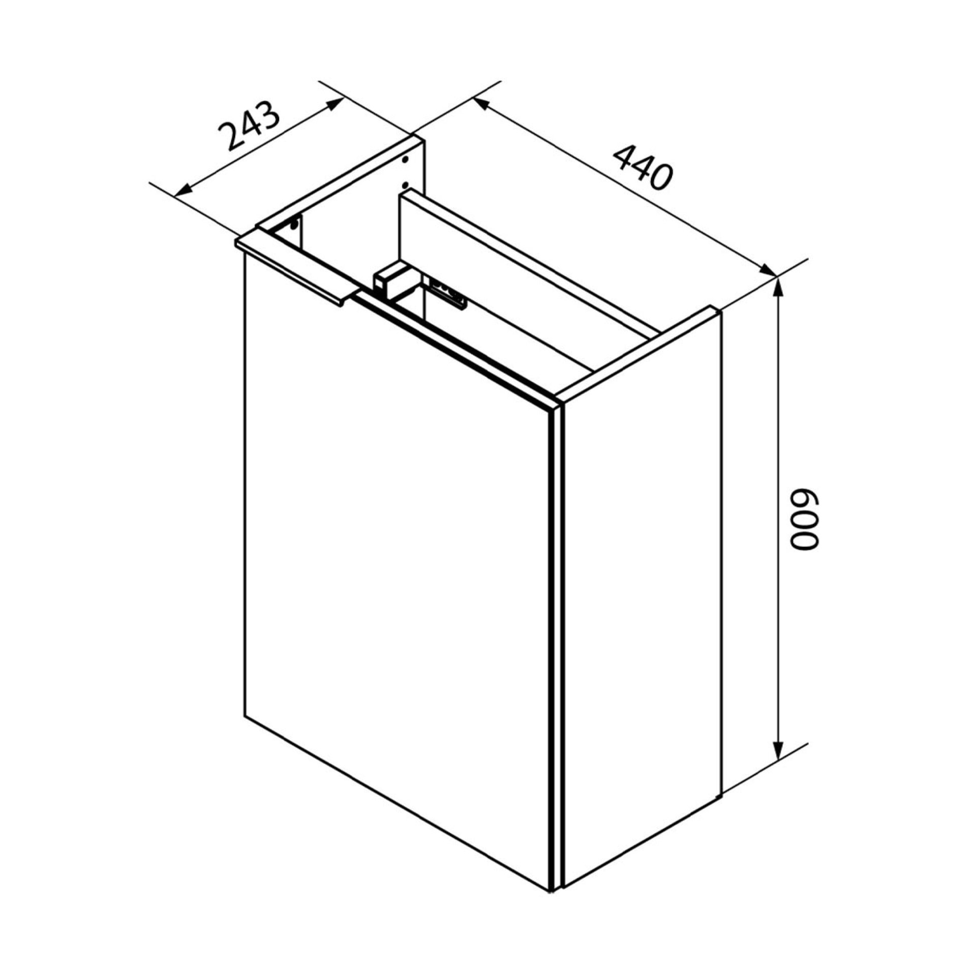 - Ausstattung: 1 Tür (rechts), 1 Einlegeboden, Metallgriffleiste