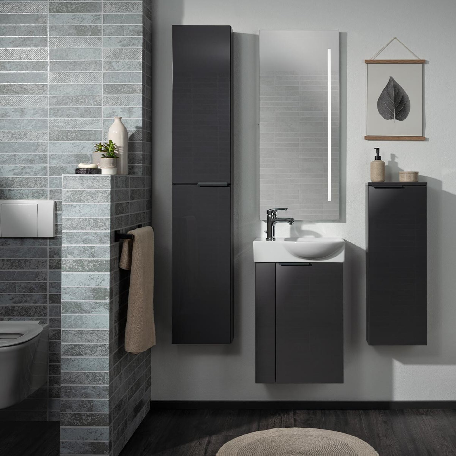 Fackelmann SBC Luna Gäste WC Set 2-teilig 45 cm, Anthrazit, rechts, Keramik, Hahnloch links
