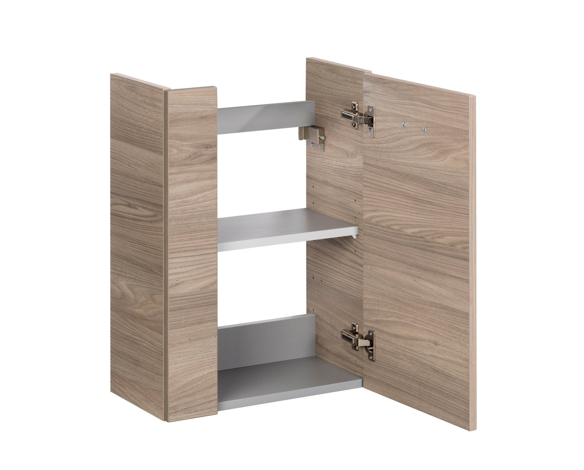 - Ausstattung: 1 Tür (rechts), 1 Einlegeboden, gedämpfte Scharniere, Griff Chrom glänzend