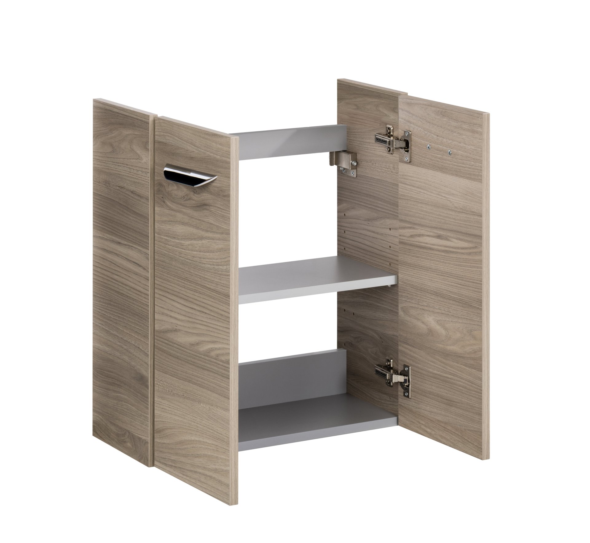 - Ausstattung: 2 Türen, 1 Einlegeboden, gedämpfte Scharniere, Griffe Chrom glänzend