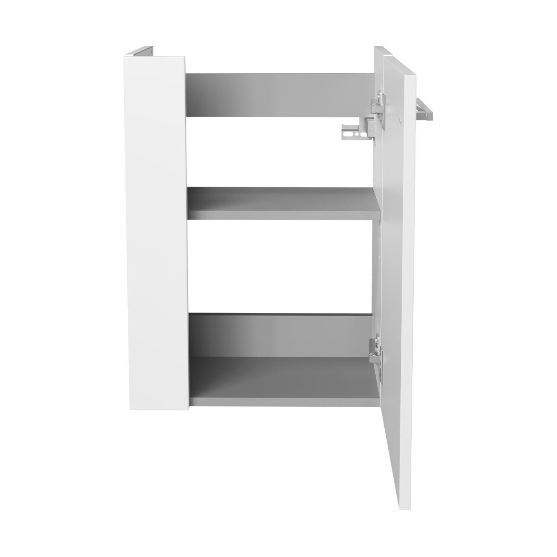 - Ausstattung: 1 Tür (rechts verwendbar), 1 Einlegeboden, gedämpfte Scharniere, Griff Chrom glänzend