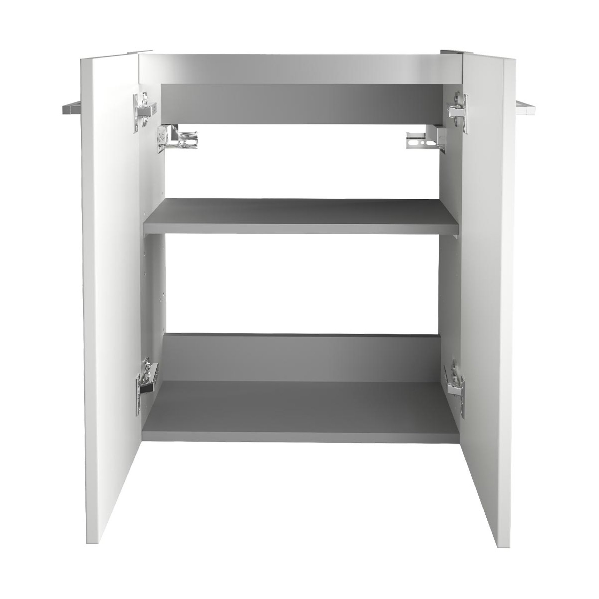 - Ausstattung: 1 Einlegeboden, 2 Türen, 2 Griffe chromglänzend