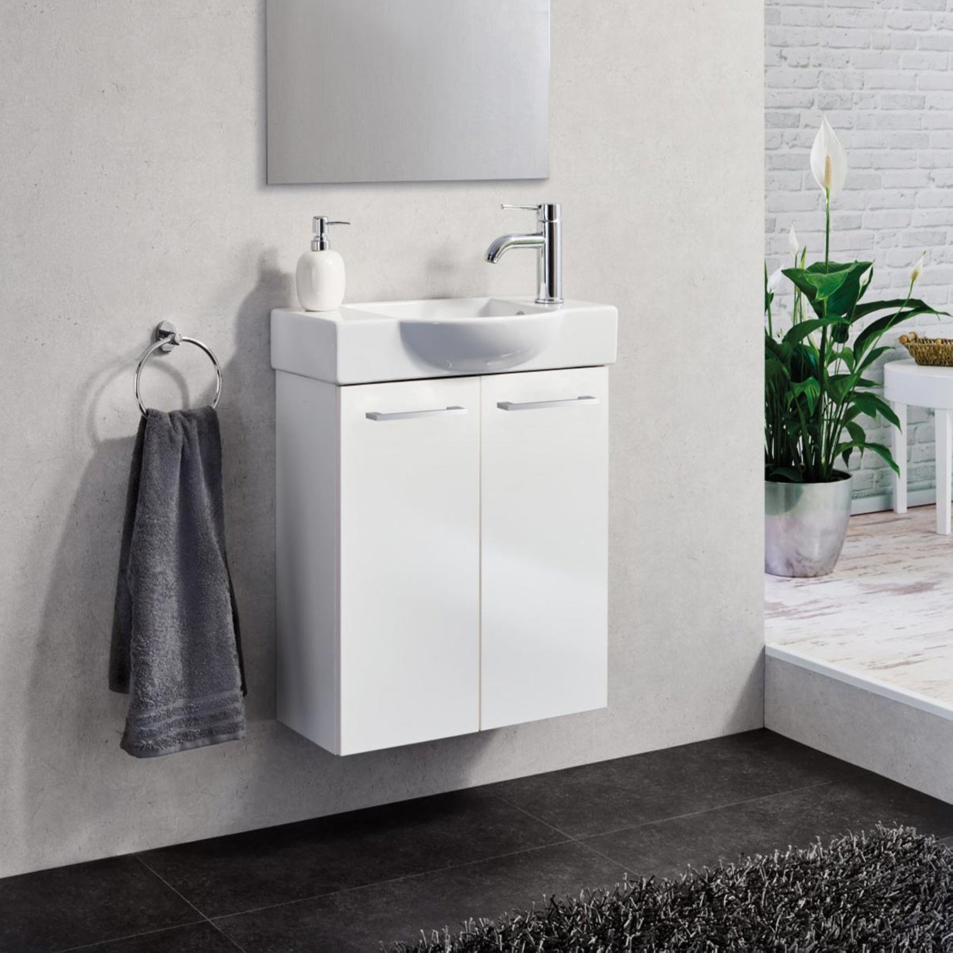 Auf den SCENO Waschtischunterschrank Mini passt unter anderem das Fackelmann Becken mit der Art.Nr. 82392. Mit viel Liebe zum Detail werden die Badmöbel von Fackelmann in Deutschland hergestellt. Der Fackelmann SBC SCENO Waschbeckenunterschrank 55 cm, Weiß, 2 Türen ist vormontiert und damit schnell in Deinem Badezimmer aufgestellt.