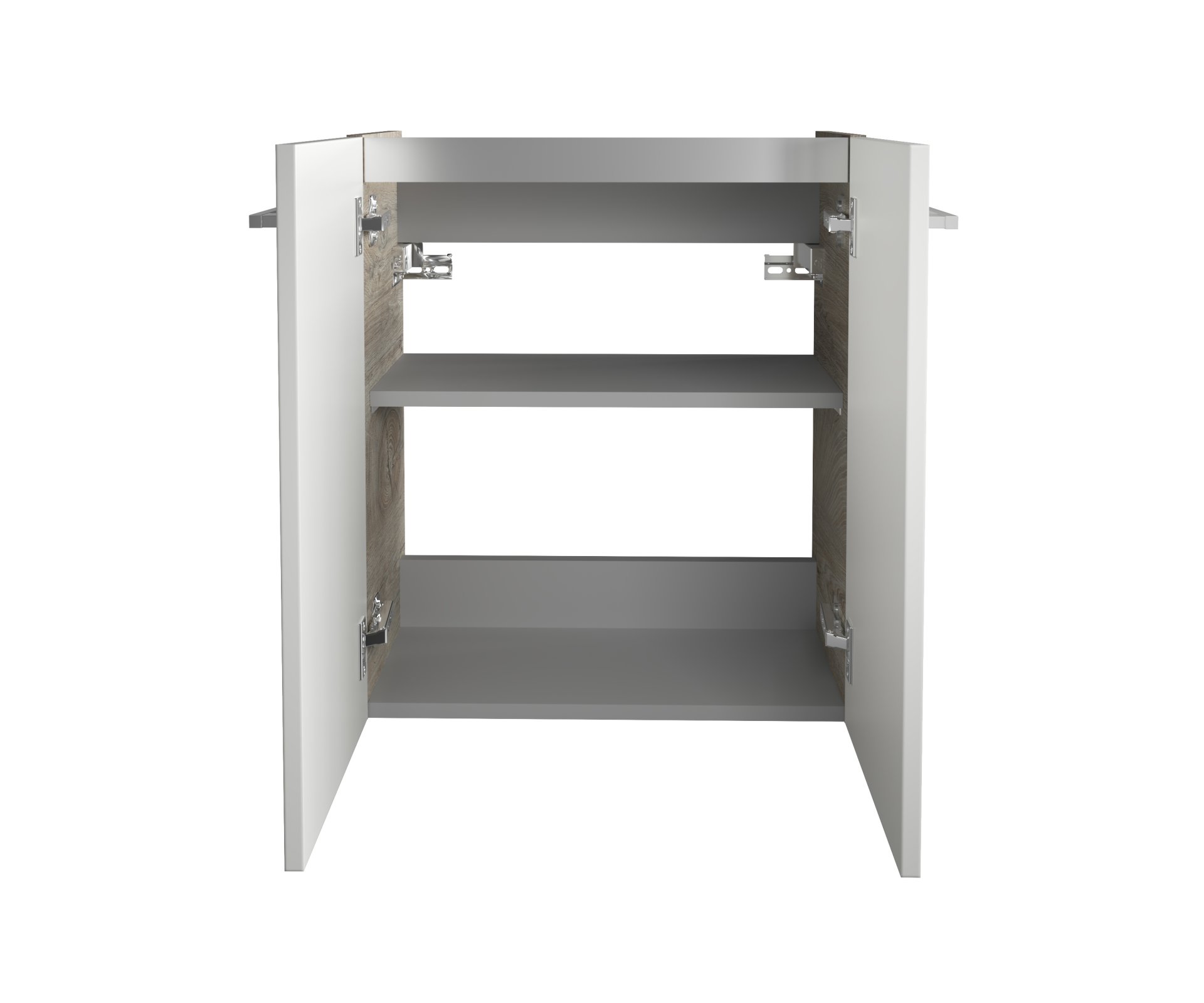 - Ausstattung: 2 Türen, 1 Einlegeboden, gedämpfte Scharniere, Griffe Chrom glänzend