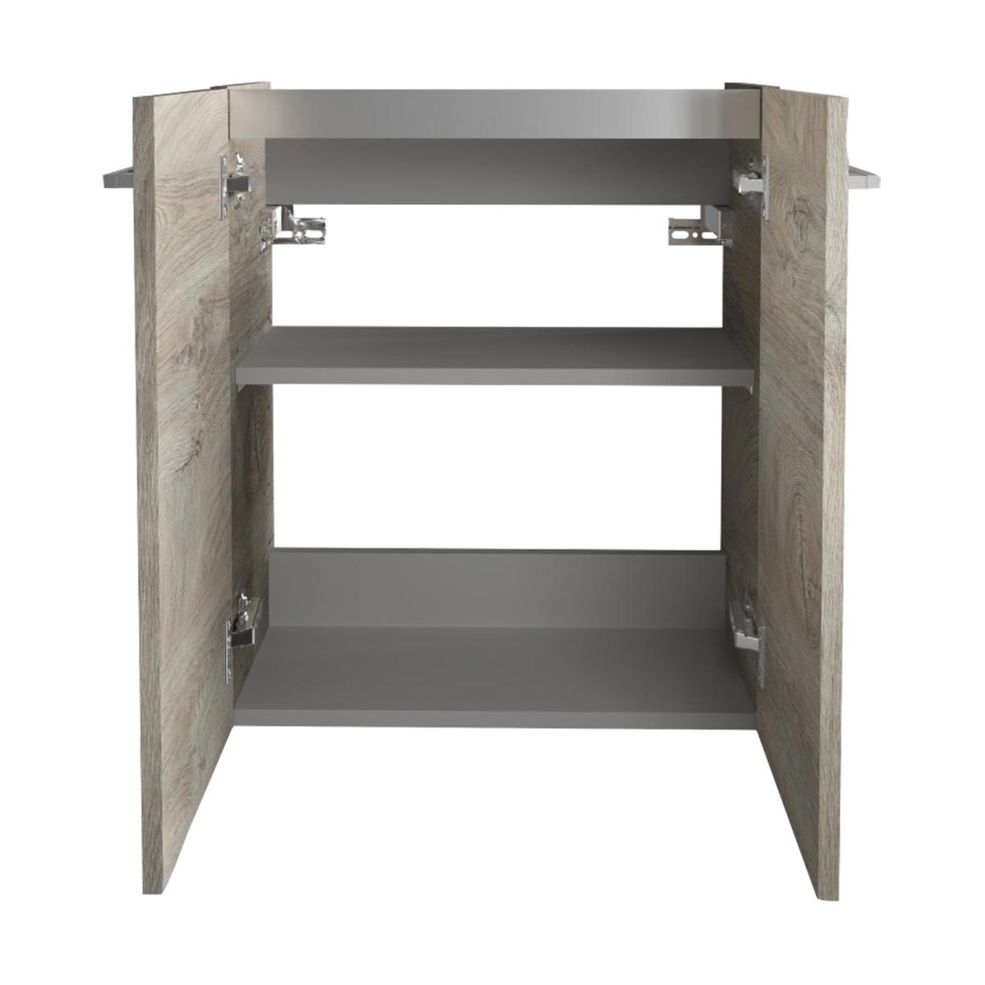- Ausstattung: 1 Einlegeboden, 2 Türen, 2 Griffe chromglänzend