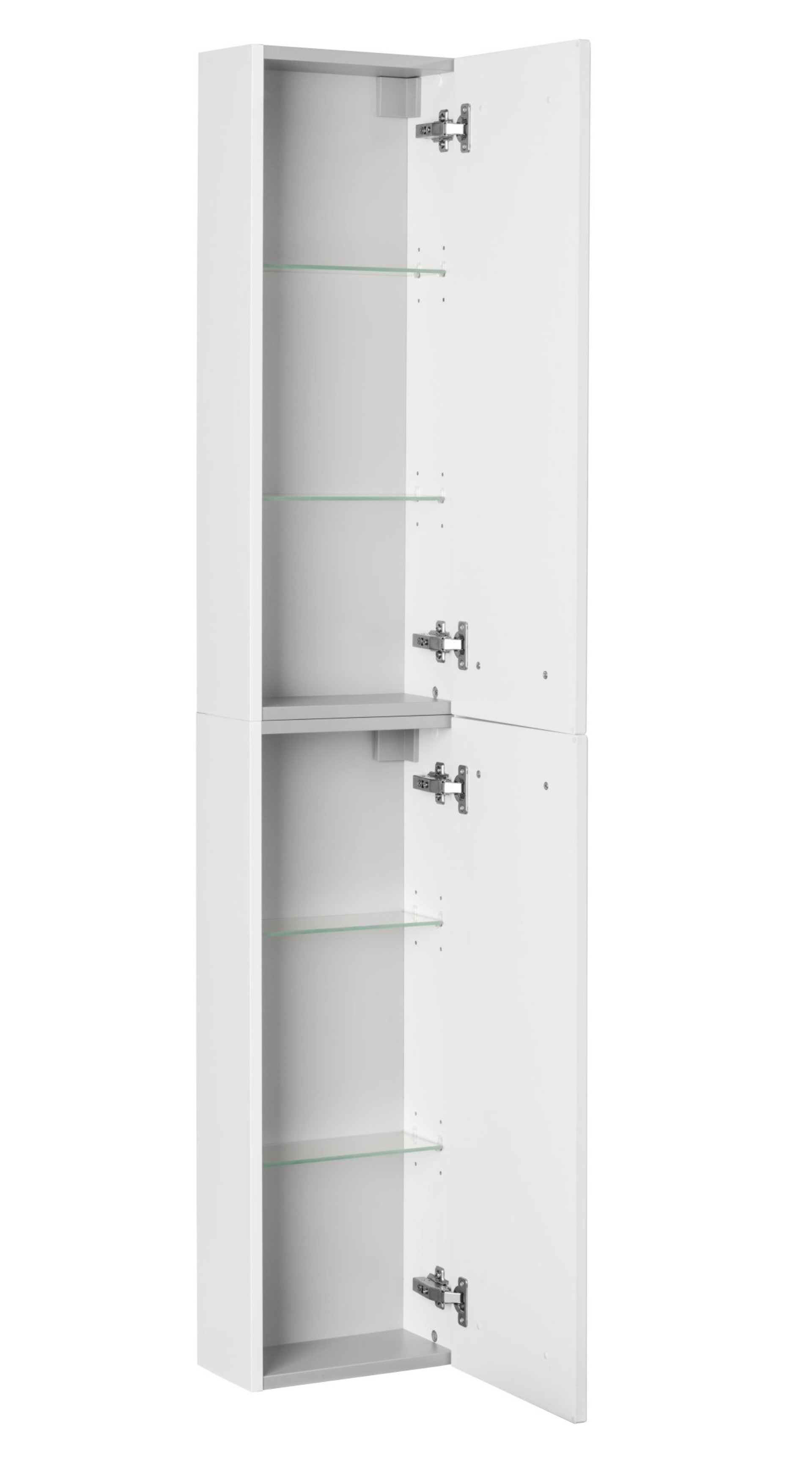 - Ausstattung: 2 Türen (rechts und links verwendbar), 4 Glaseinlegeböden, gedämpfte Scharniere