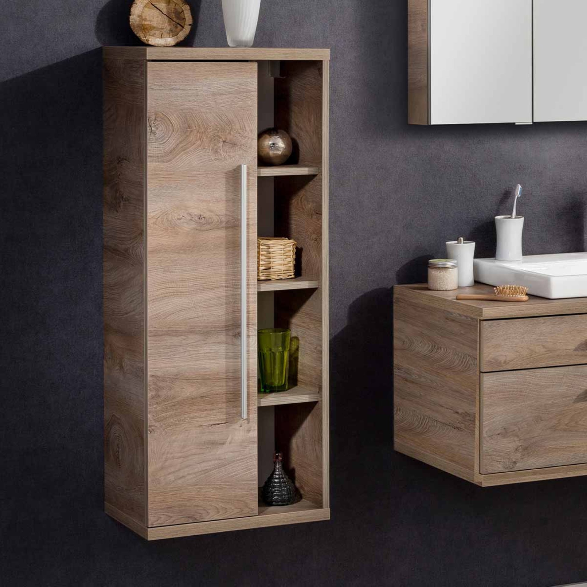 Fackelmann STANFORD Midischrank 42 cm breit, Braun hell, Türanschlag links