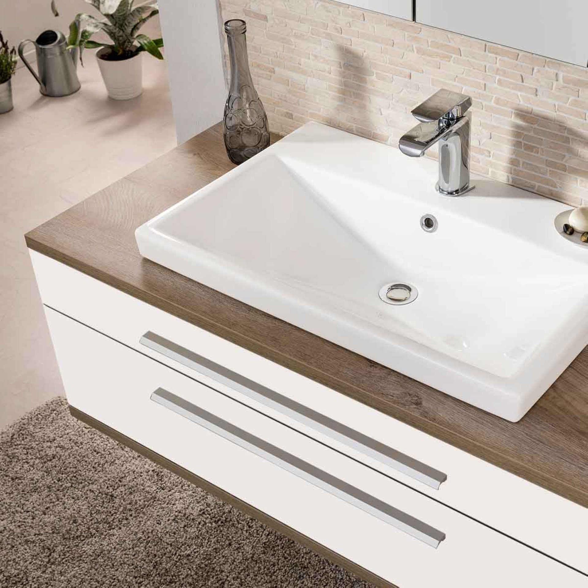 Du magst es elegant, klar strukturiert und aufgeräumt? Dann ist das 2-teilige Set in der Kombination Weiß/Braun aus der Serie STANFORD von Fackelmann genau die richtige Wahl. Klare Linienführung verbunden mit den Farben Braun und Weiß sorgen für Exklusivität. Die Holzstruktur der Möbel ist der natürlichen Haptik von Eiche nachempfunden. Matte Griffleisten aus Aluminium setzen Akzente ohne vordergründig zu wirken. Mit einer Breite von 110 cm bieten die beiden Schubladen ausreichend Stauraum für Deine Badaccessoires. Das Fackelmann STANFORD Badmöbelset 2-teilig, Keramikbecken, 110 cm, weiß wird vormontiert geliefert und ist damit einfach und schnell im Badezimmer integriert.