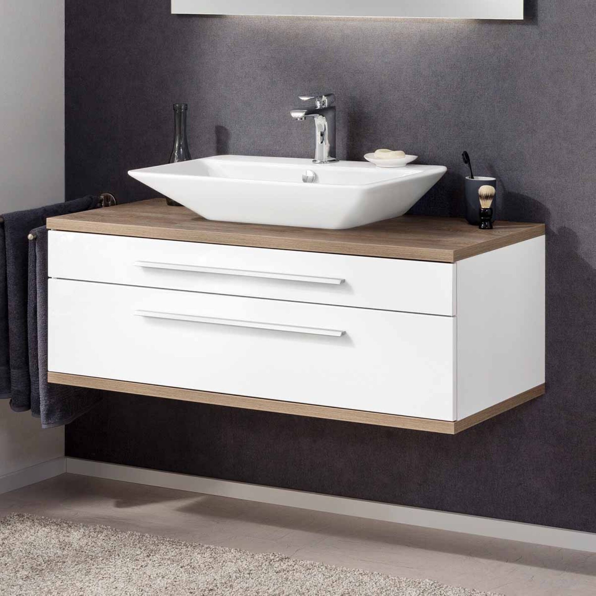 Der Fackelmann Waschtischunterschrank aus der Serie STANFORD für Aufsatzbecken ist das Highlight für Dein modernes Badezimmer. Fackelmann bietet eine große Auswahl an passenden Aufsatzbecken. Der Korpus und die Schubladenfront sind in der Farbe Weiß gehalten. Als Gestaltungselement für die Abdeckplatte (ohne Ausschnitt) und die Bodenplatte entschieden sich die Designer für einen natürlichen Braunton in Natur-Eiche Optik. Dieser Kontrast erzeugt einen Blickfang in jedem Badezimmer. Mit den zwei geräumigen Schubladen in Hochglanz Weiß bietet der Waschtischunterschrank ausreichend Stauraum für viele Badaccessoires. Das Organisationssystem aus Buchenholz (Art.Nr. 80010) sorgt für eine aufgeräumte Schublade. Hier sind auch kleine Badutensilien gut sortiert. Dieses ist zusätzlich erhältlich und exakt auf die obere Schublade dieser Serie angepasst. Das Soft-Close-System gestattet ein leichtes und fast geräuschloses Schließen der 110 cm breiten Schubladen. Der Waschtischunterschrank wird vormontiert geliefert. Damit kann der Fackelmann STANFORD Waschbeckenunterschrank 110 cm schnell und einfach in Dein Badezimmer integriert werden. Badmöbel von Fackelmann werden mit viel Liebe zum Detail in Deutschland hergestellt.