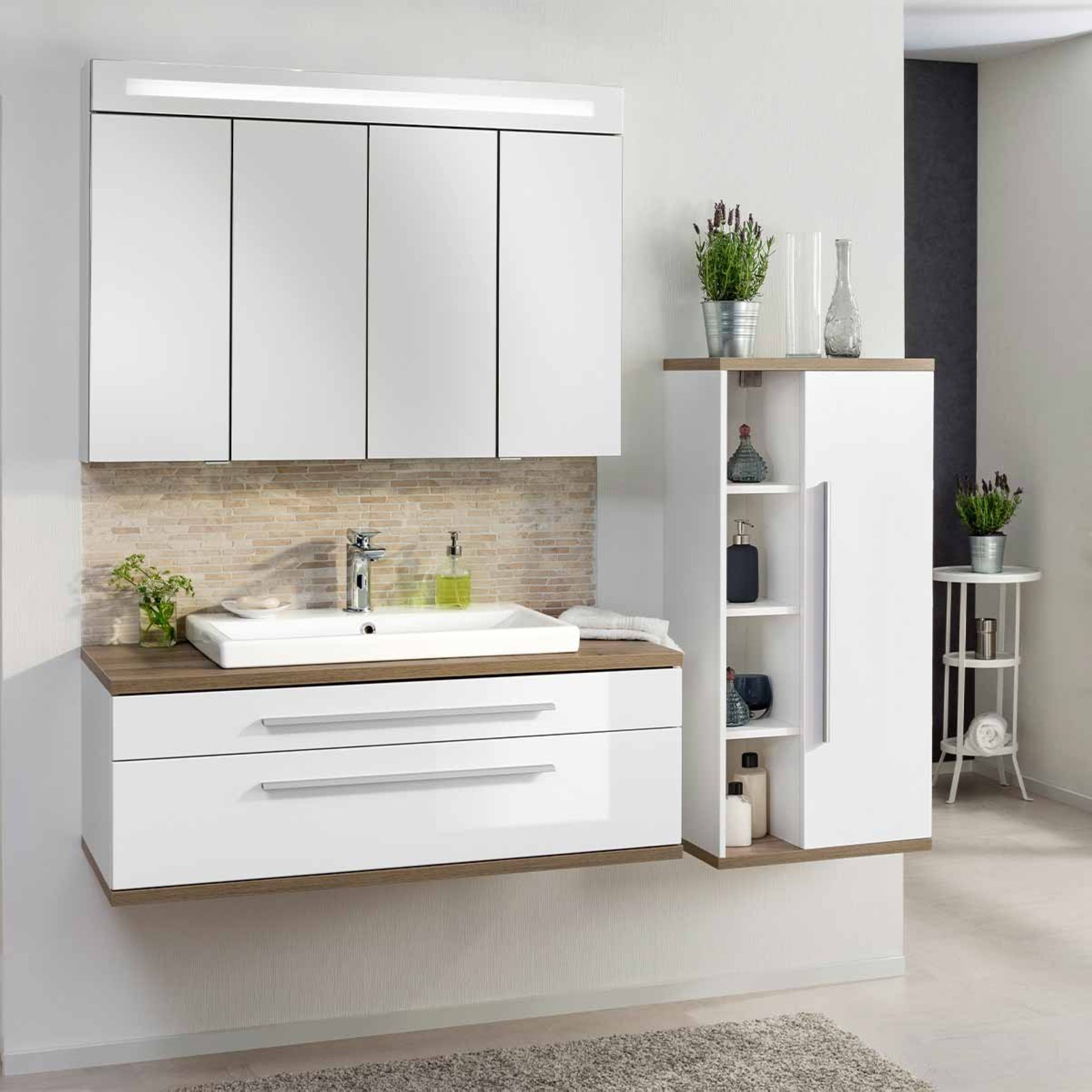 - Farbe/Design: Korpus und Front Weiß, Abdeckplatte und Boden Nature Oak