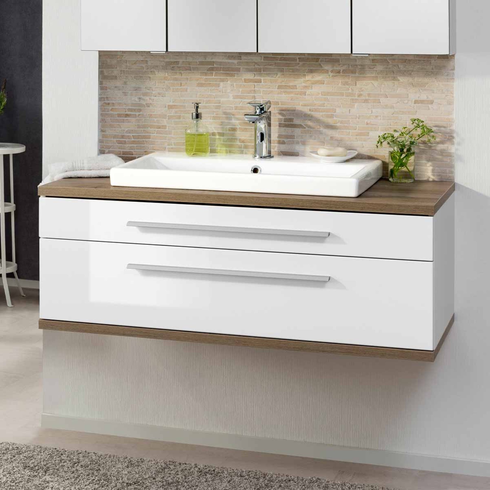 Der Fackelmann Waschtischunterschrank aus der Serie STANFORD mit Beckenausschnitt ist das Highlight für Dein modernes Badezimmer. Fackelmann bietet mit dem Keramikwaschbecken (Art.Nr. 80001) genau das passende Becken für diesen Waschtischunterschrank (nicht im Lieferumfang enthalten). Der Korpus und die Schubladenfront sind in der Farbe Weiß gehalten. Als Gestaltungselement für die Abdeckplatte (mit Ausschnitt) und die Bodenplatte entschieden sich die Designer für einen natürlichen Braunton in Natur-Eiche Optik. Dieser Kontrast erzeugt einen Blickfang in jedem Badezimmer. Mit den zwei geräumigen Schubladen in Hochglanz Weiß bietet der Waschtischunterschrank ausreichend Stauraum für viele Badaccessoires. Das Organisationssystem aus Buchenholz (Art.Nr. 80010) sorgt für eine aufgeräumte Schublade. Hier sind auch kleine Badutensilien gut sortiert. Dieses ist zusätzlich erhältlich und exakt auf die obere Schublade dieser Serie angepasst. Das Soft-Close-System gestattet ein leichtes und fast geräuschloses Schließen der 110 cm breiten Schubladen. Der Waschtischunterschrank wird vormontiert geliefert. Damit kann der Fackelmann STANFORD Waschbeckenunterschrank 110 cm, Weiß, mit Beckenausschnittschnell und einfach in Dein Badezimmer integriert werden. Badmöbel von Fackelmann werden mit viel Liebe zum Detail in Deutschland hergestellt.