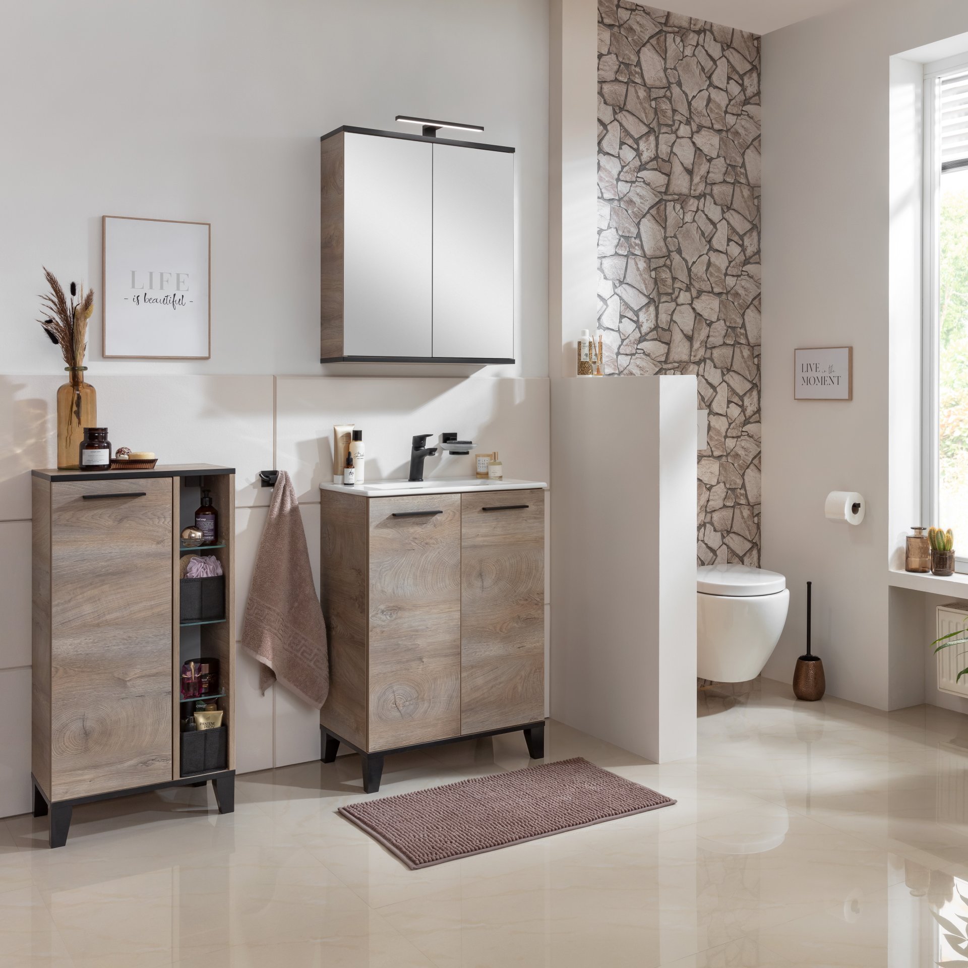 Fackelmann TE-A Badmöbelset 2-teilig 60 cm breit mit Füßen, Braun hell, Keramik