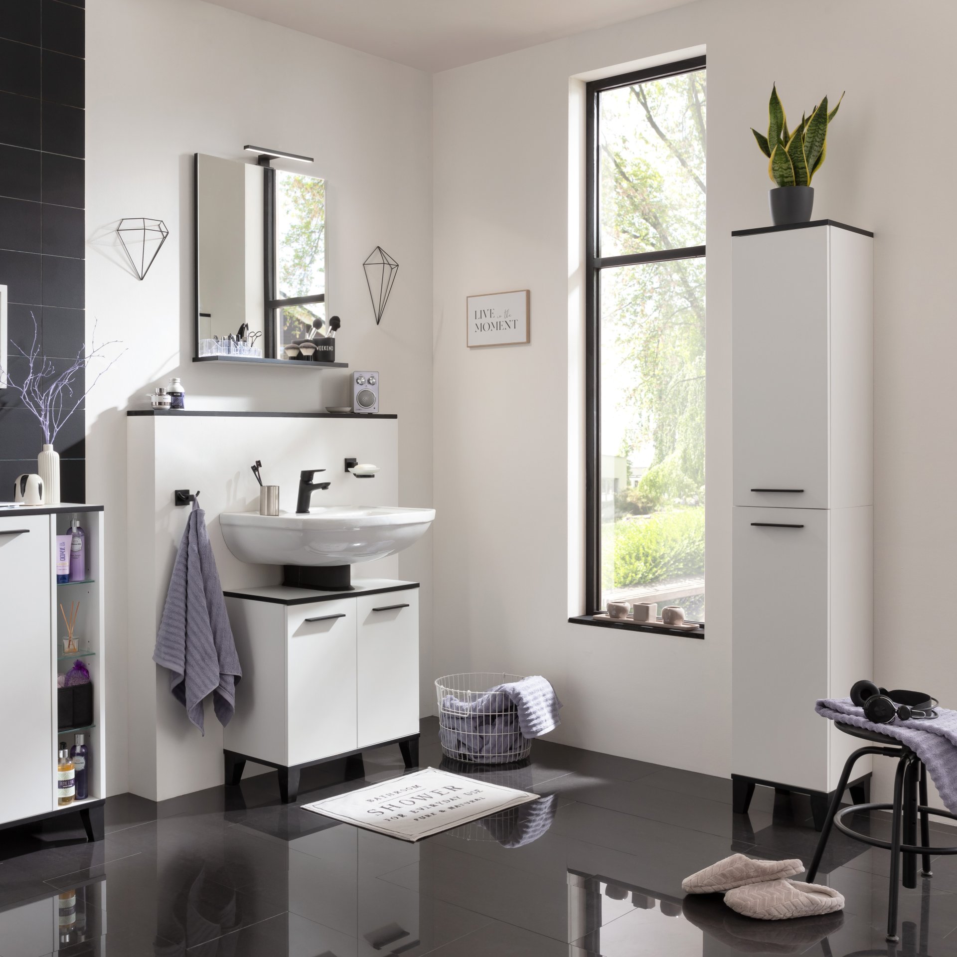 Dieser moderne Hochschrank aus der Serie TE-A von Fackelmann bietet Dir sowohl einen stilvollen Stauraum, der für Ordnung im Badezimmer sorgt, als auch ein elegantes Design. Die matte weiße Oberfläche sorgt für einen sauberen und frischen Look. Mattschwarze Kanten und Sockelfüße verleihen dem Schrank einen zeitlosen Charakter. Hinter den beiden Türen befinden sich vier Glaseinlegeböden, die dem Hochschrank Struktur verleihen. Hier lassen sich Deine Badutensilien, wie Handtücher und Badaccessoires, bequem und immer griffbereit verstauen. Vier mattschwarze Sockelfüße mit einer Höhe von 10 cm verleihen dem Schrank Stabilität und das Reinigen des Bodens darunter fällt leicht. Modernes Design und hochwertige Materialien machen den Badschrank zu einer langlebigen Ergänzung für jedes Badezimmer. Badmöbel von Fackelmann werden mit viel Liebe zum Detail in Deutschland hergestellt. Der Fackelmann TE-A Hochschrank 30 cm mit Füßen, Weiß ist zerlegt und wird mit einer leicht verständlichen Aufbauanleitung geliefert.
