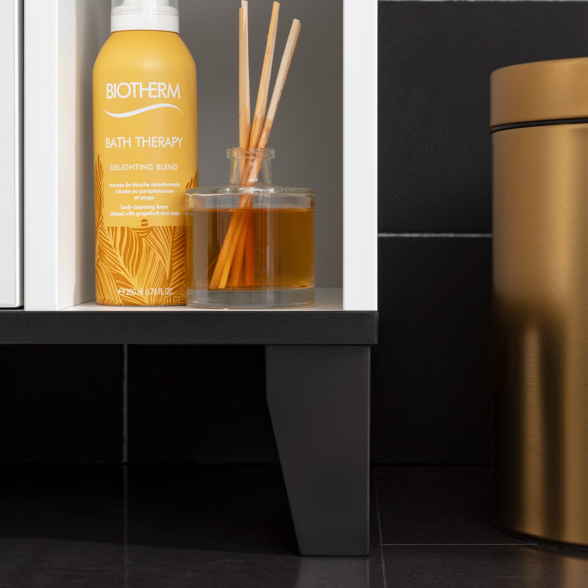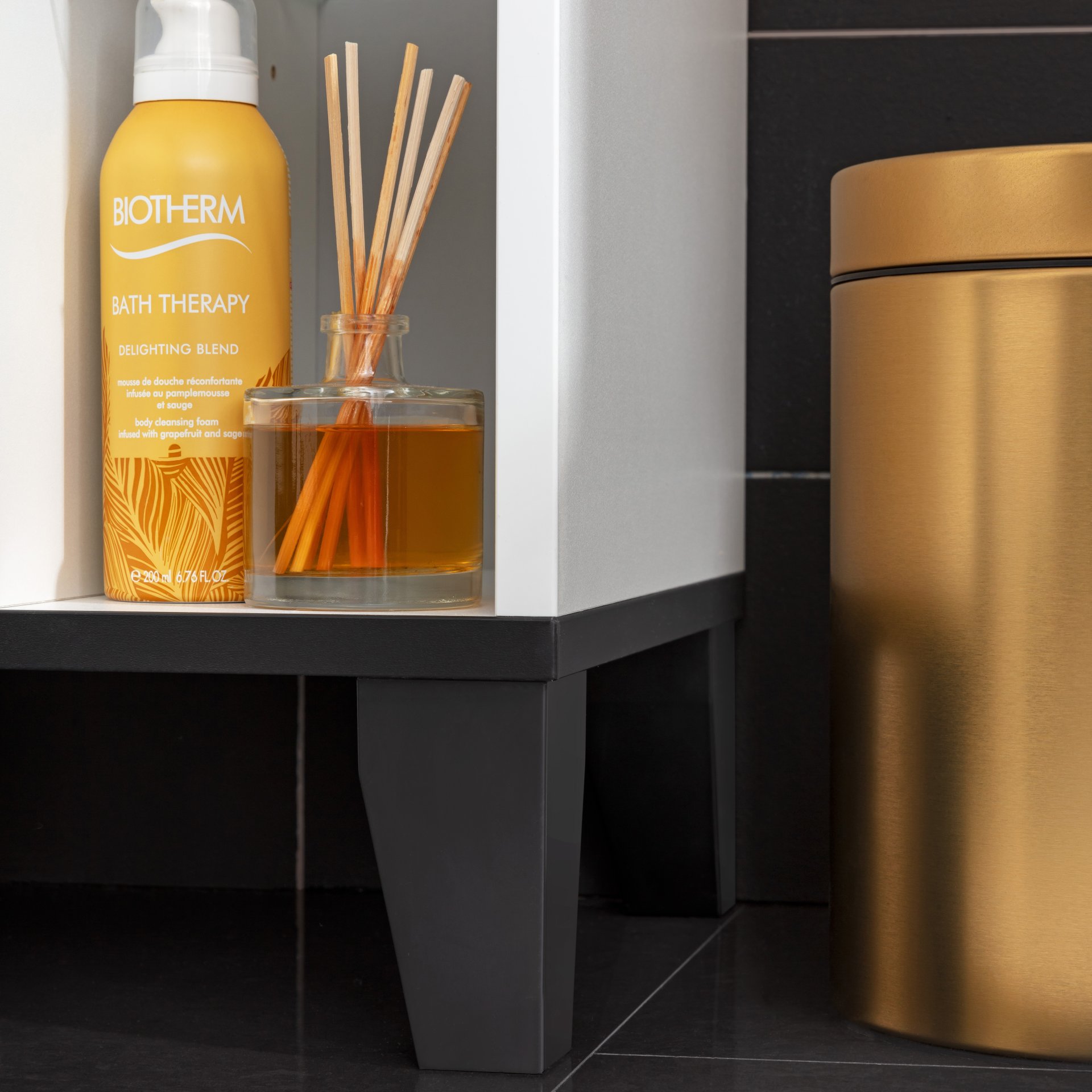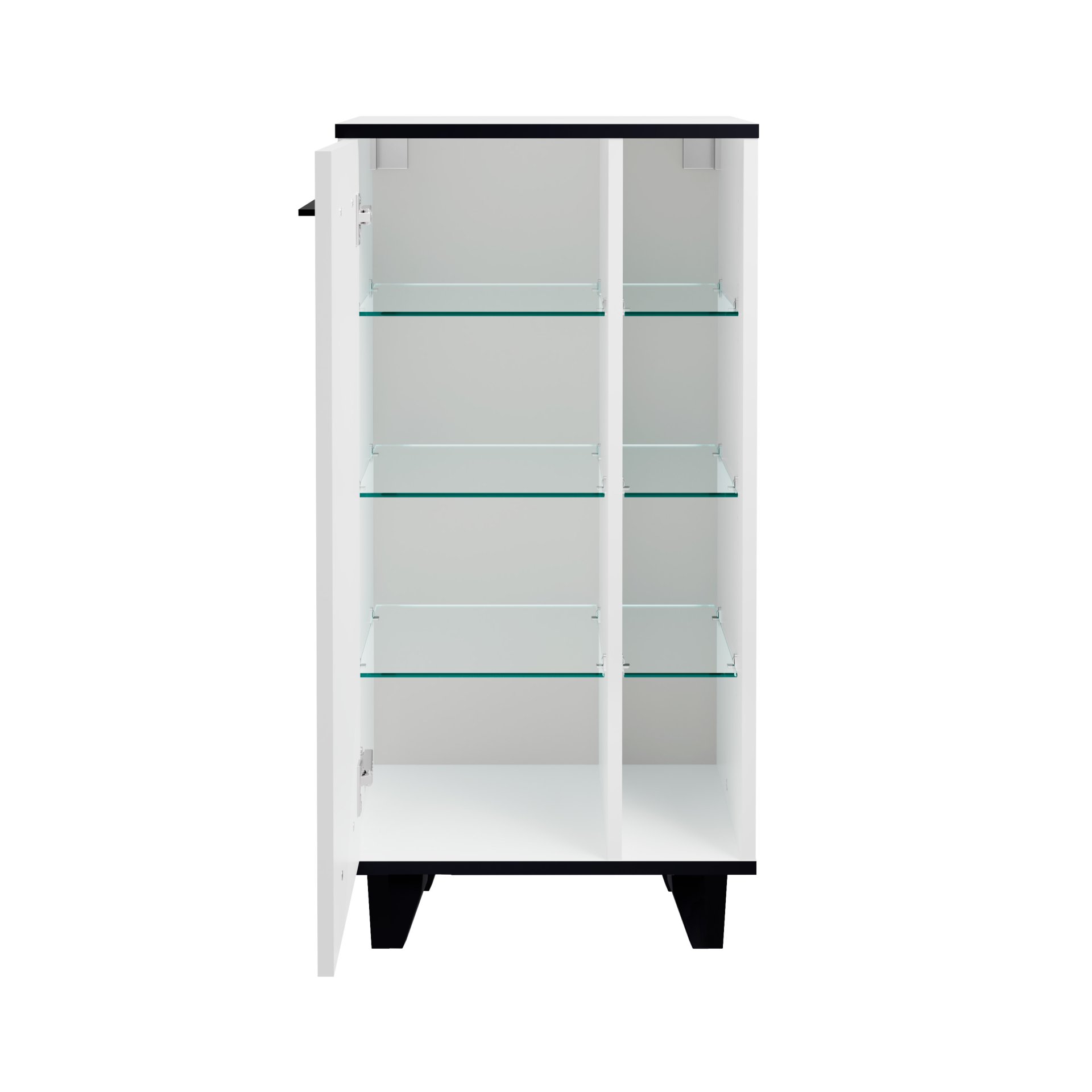 - Ausstattung: 1 Tür, 3 Glaseinlegeböden, 3 Glasfachböden, Abdeckplatte, schwarze Kanten und 4 Sockelfüße (Höhe 10 cm)