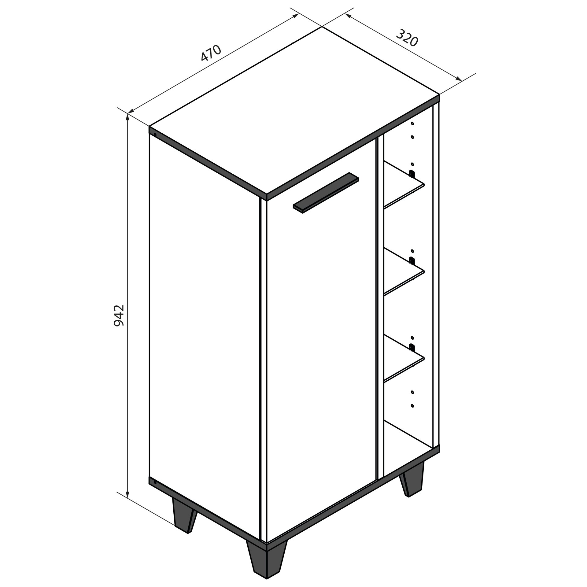 - Maße: 47cm Breite, 94,2cm Höhe, 32 cm Tiefe