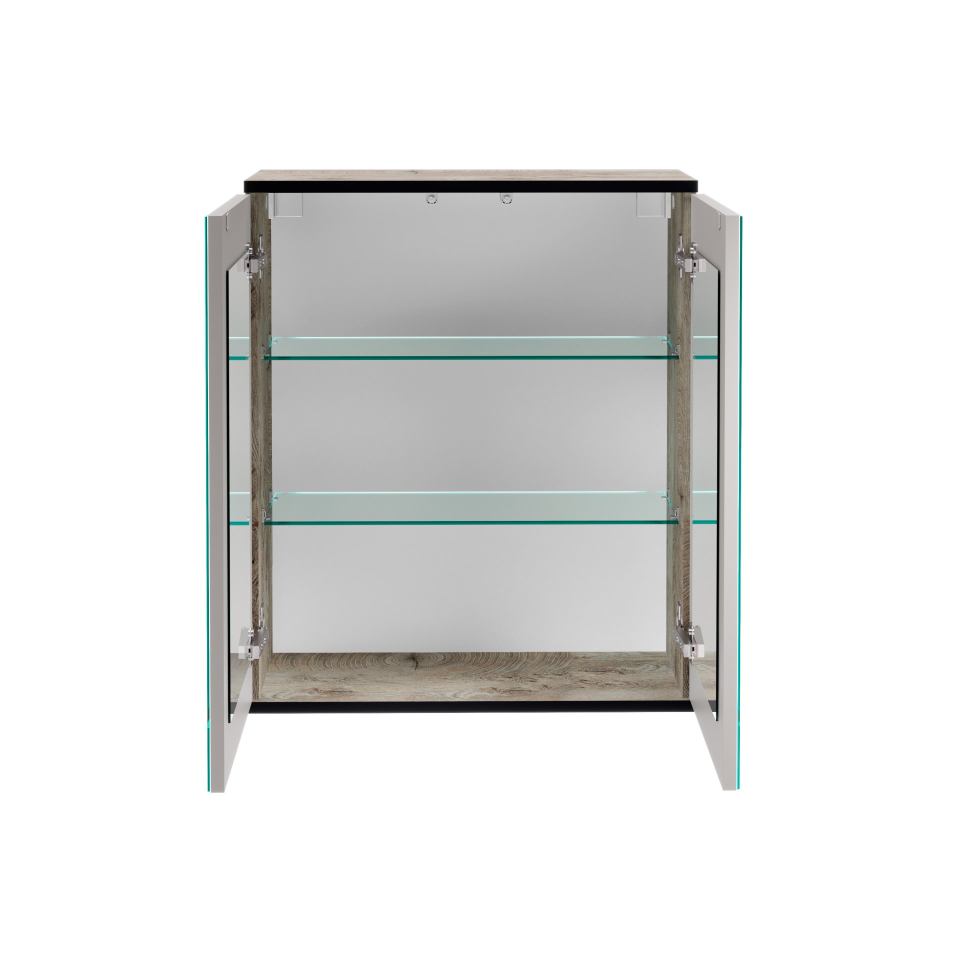 - Ausstattung: 2 Türen mit Innenspiegel, 2 Glaseinlegeböden
