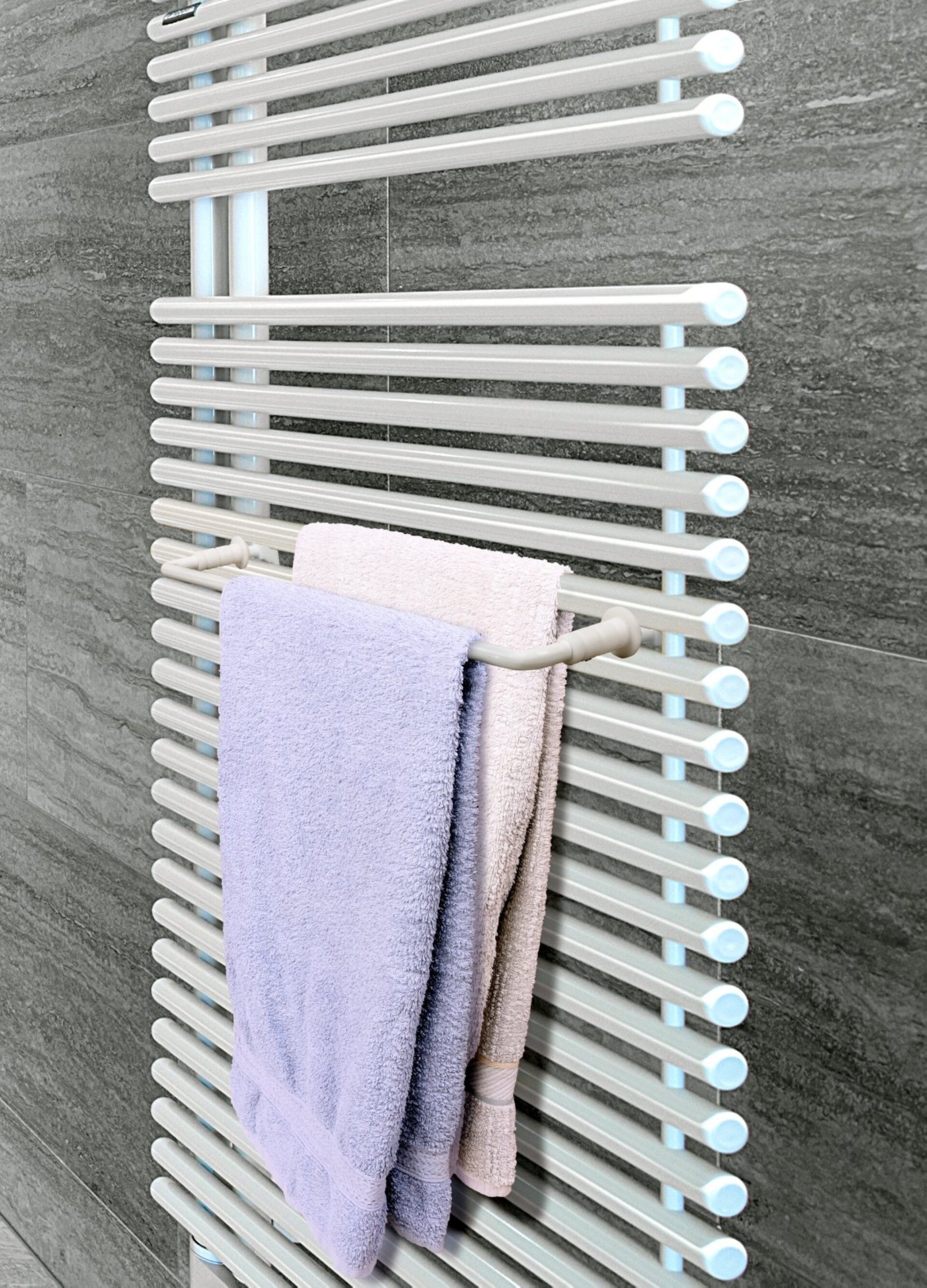 Mit dem Universal Handtuchhalter für Wandheizkörper von Fackelmann kannst Du Deine Handtücher praktisch an der Heizung trocknen. Und zusätzlich sind sie bei Gebrauch schön angewärmt. Der 46 cm tiefe Handtuchhalter hat eine Seele aus Edelstahl und ist flächendeckend weiß ummantelt. Er passt in senkrechte und waagerechte Stangen aller herkömmlicher Wandheizkörper. Durch seine einfache Montage ist er kinderleicht installiert und schafft Dir eine zusätzliche Trocknungsfläche in Deinem Badezimmer.