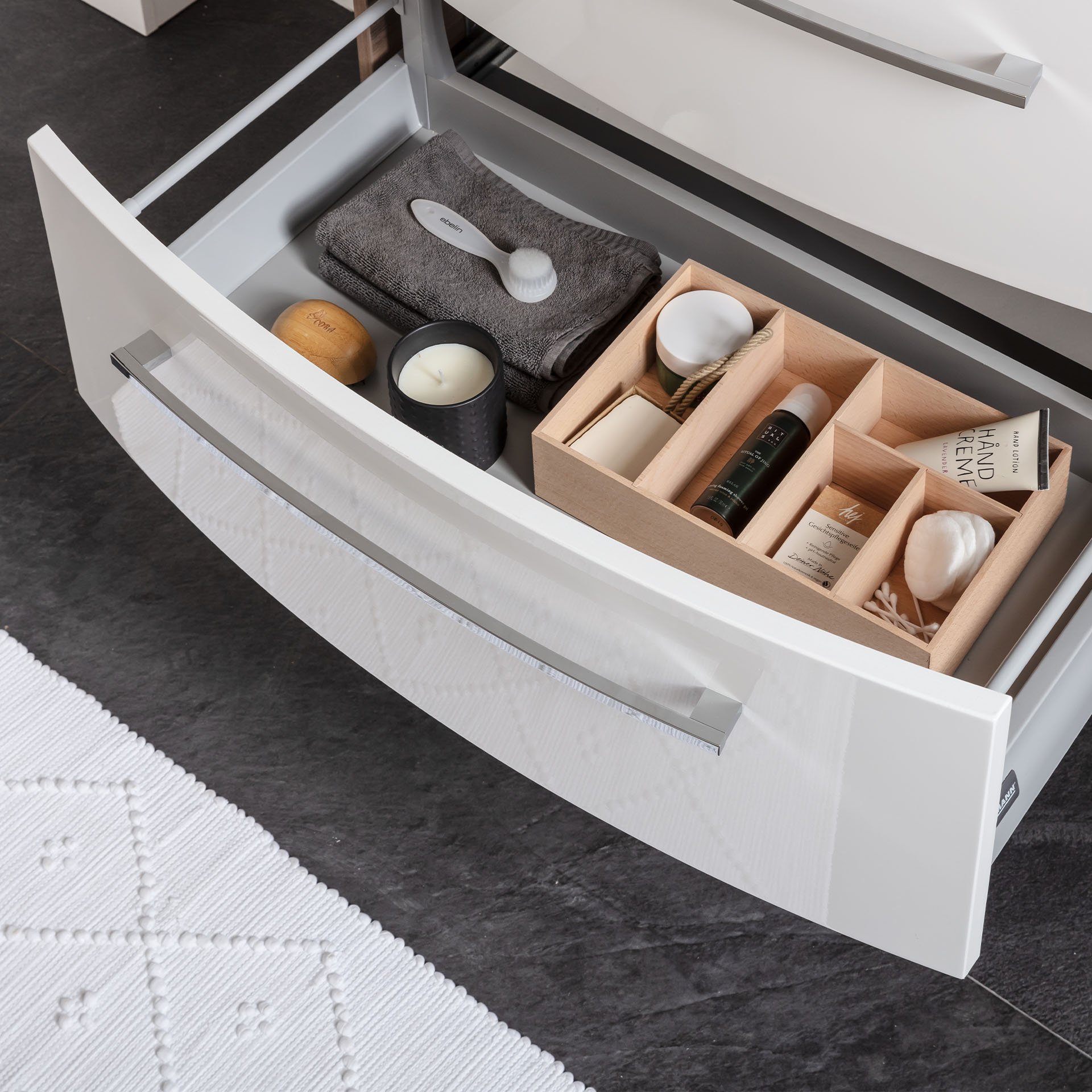 - Ausstattung: 2 Schubladen mit Soft-Close-System, 2 Griffe verchromt