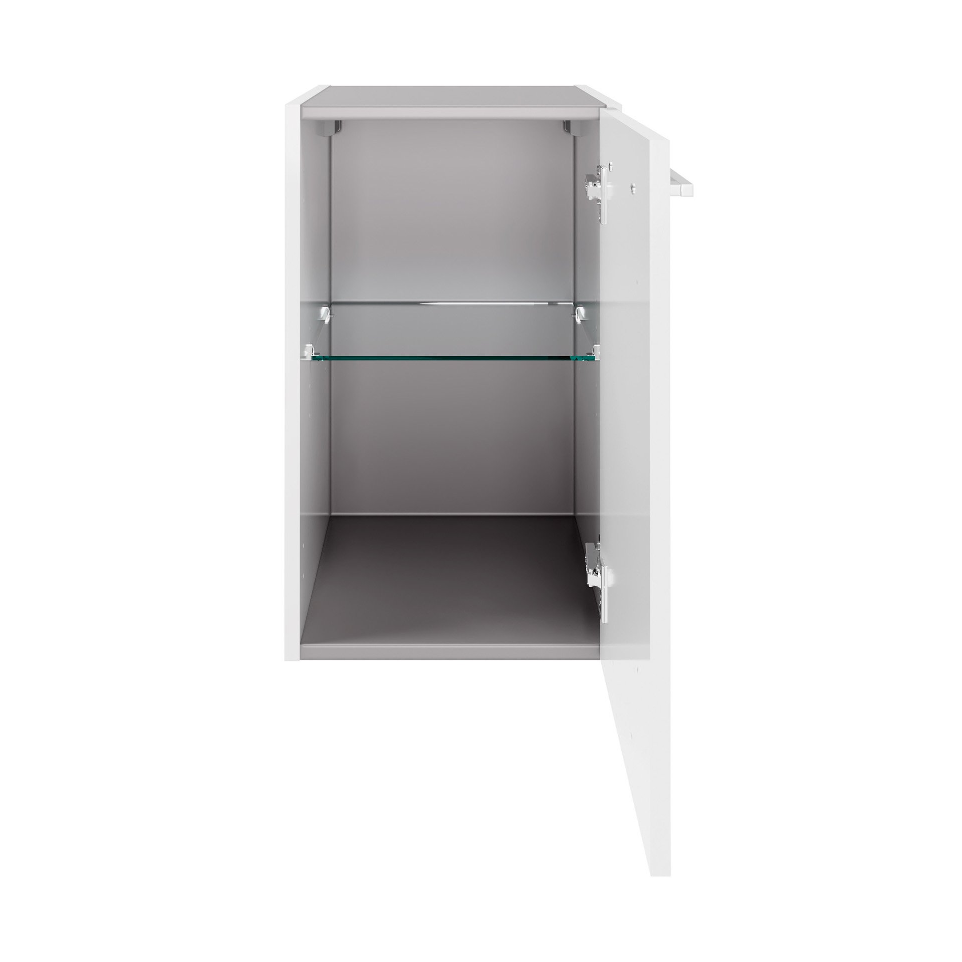 - Ausstattung: 1 Tür (Türanschlag rechts), 1 Glaseinlegeboden, gedämpfte Scharniere