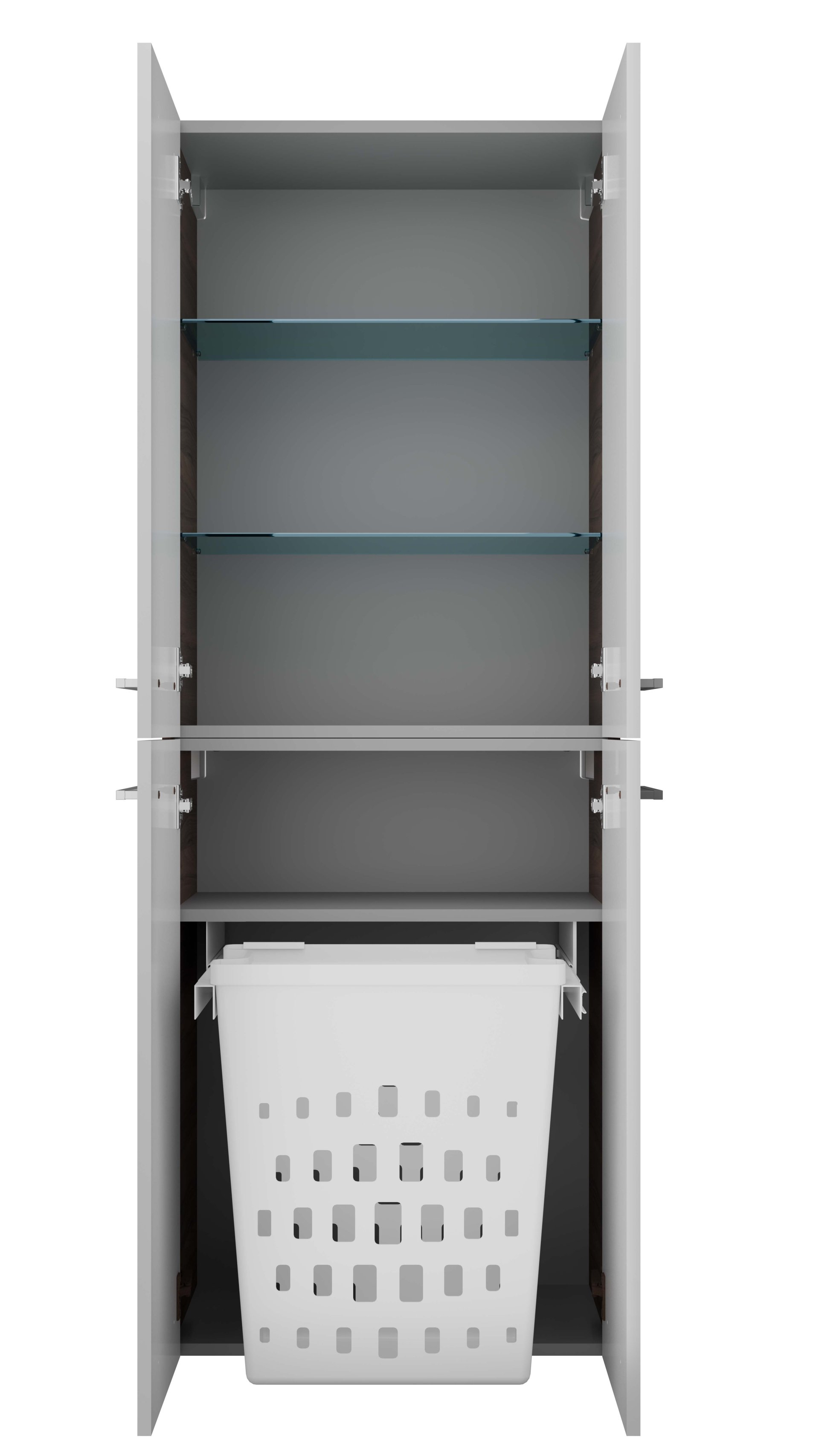Fackelmann VERONA Doppel Hochschrank 60 cm, Braun Dunkel/Weiß Hochglanz mit Wäschekorb