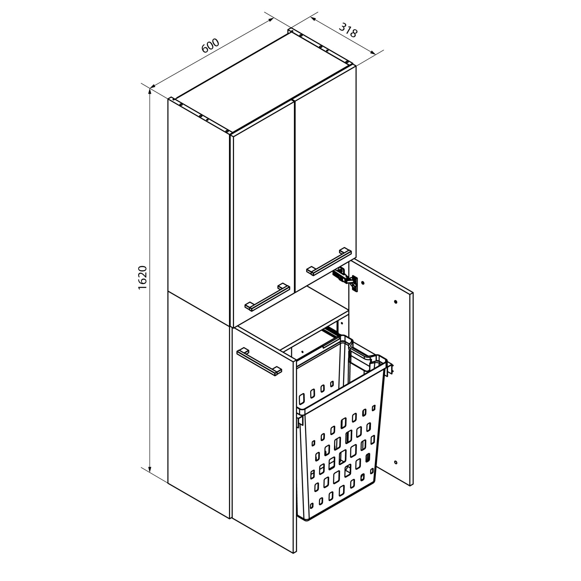 - Besonderheit: mit Wäschekorb Auszug, Türen mit gedämpften Scharnieren, Korpus 2 Teile