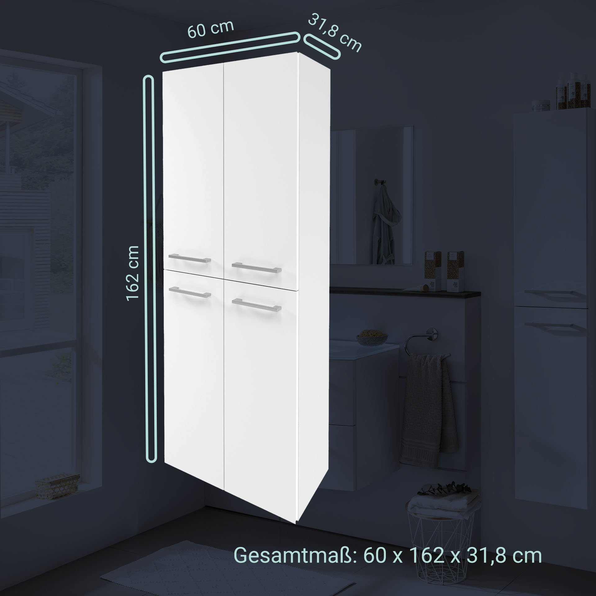 - Maße: 60 cm Breite, 162 cm Höhe und 31,8 cm Tiefe