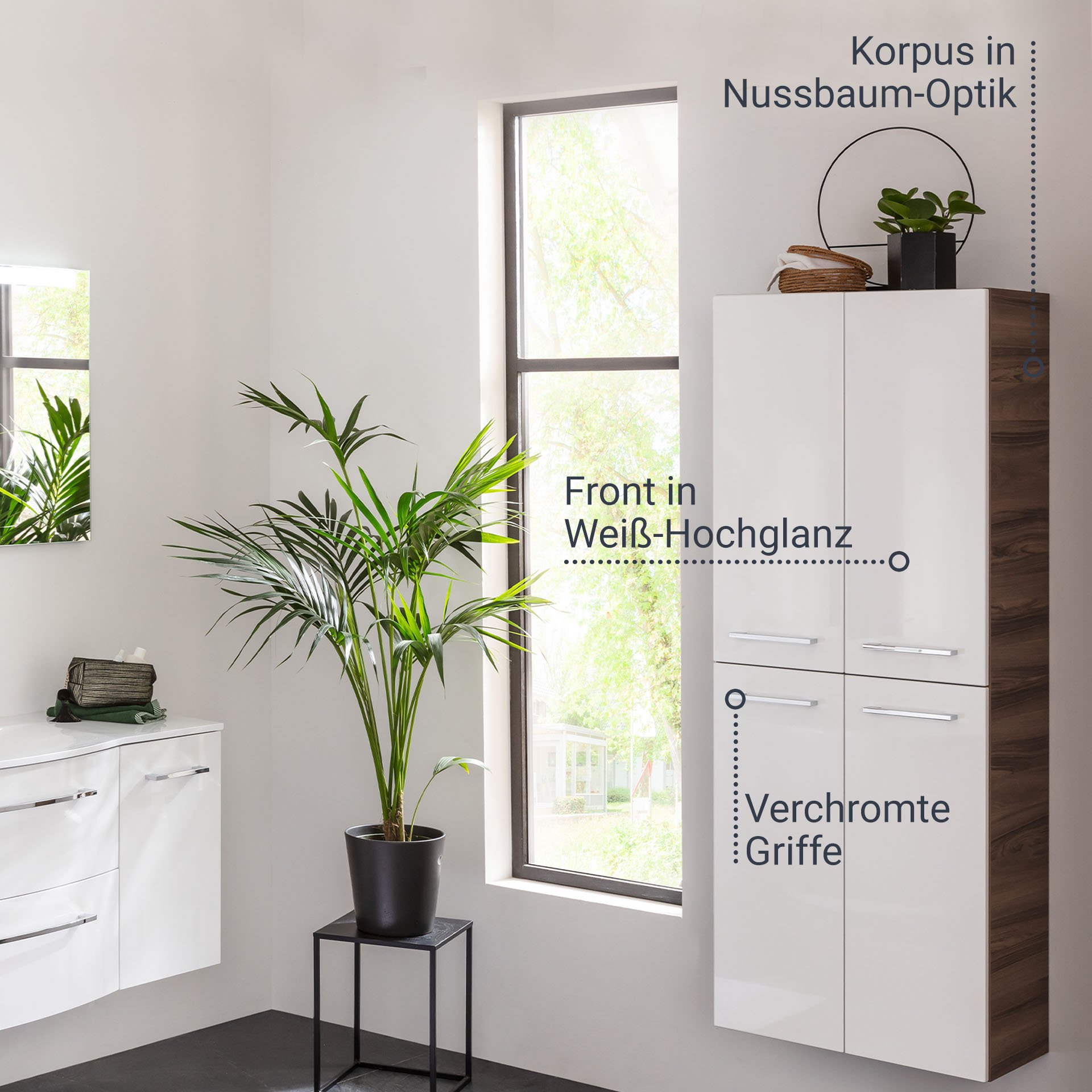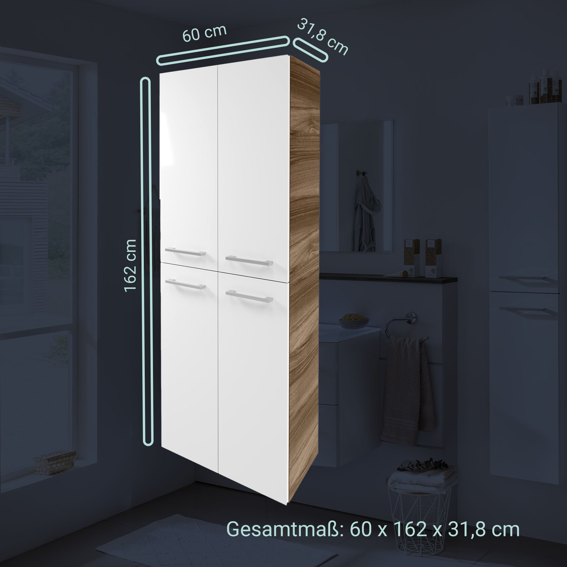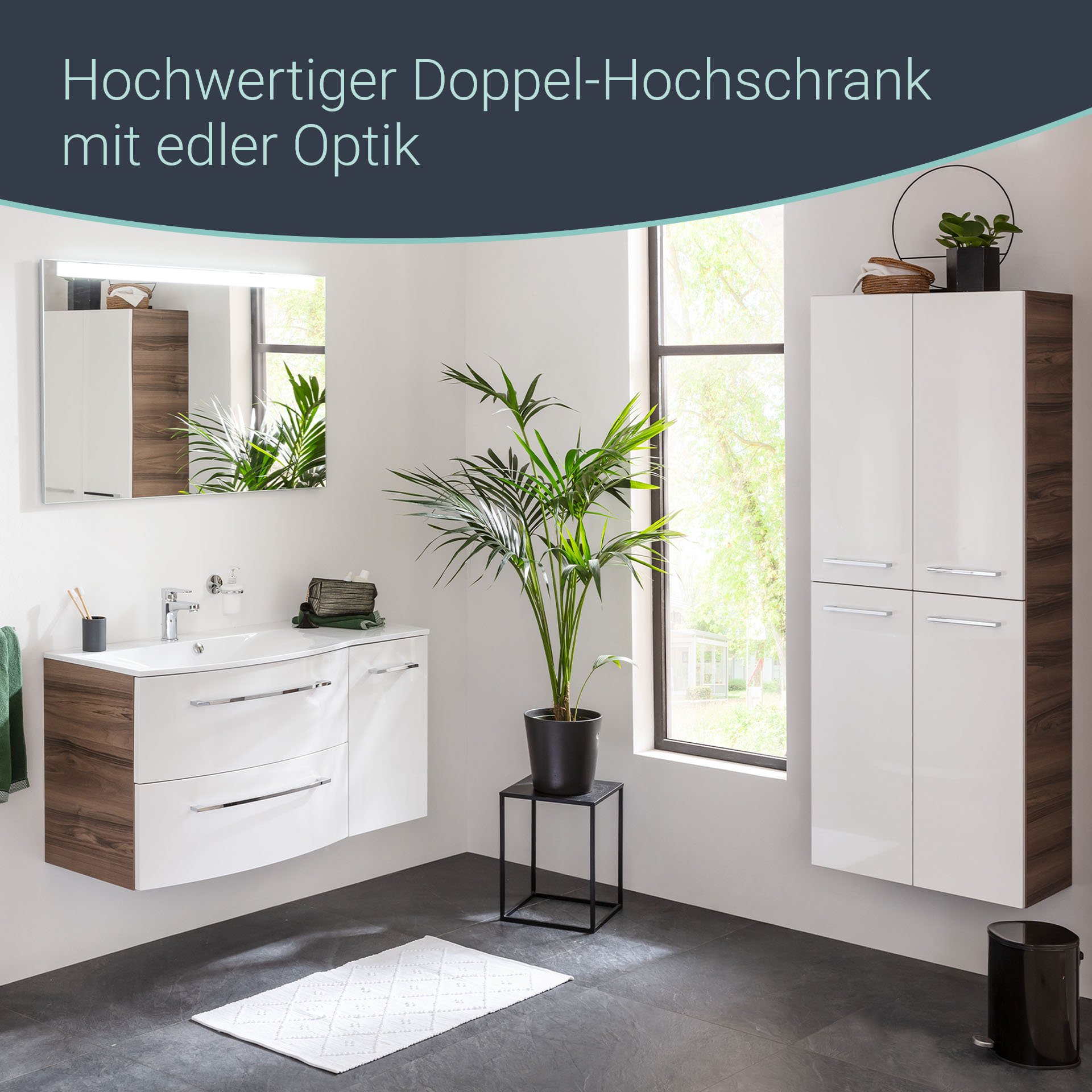 Fackelmann VERONA Doppel Hochschrank 60 cm, Braun Dunkel/Weiß Hochglanz
