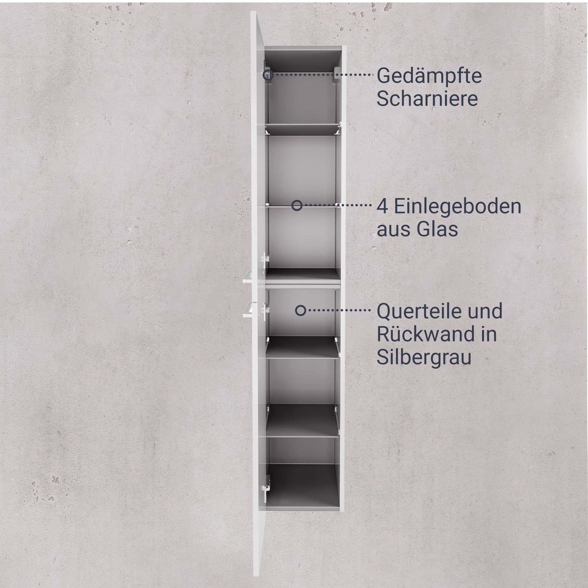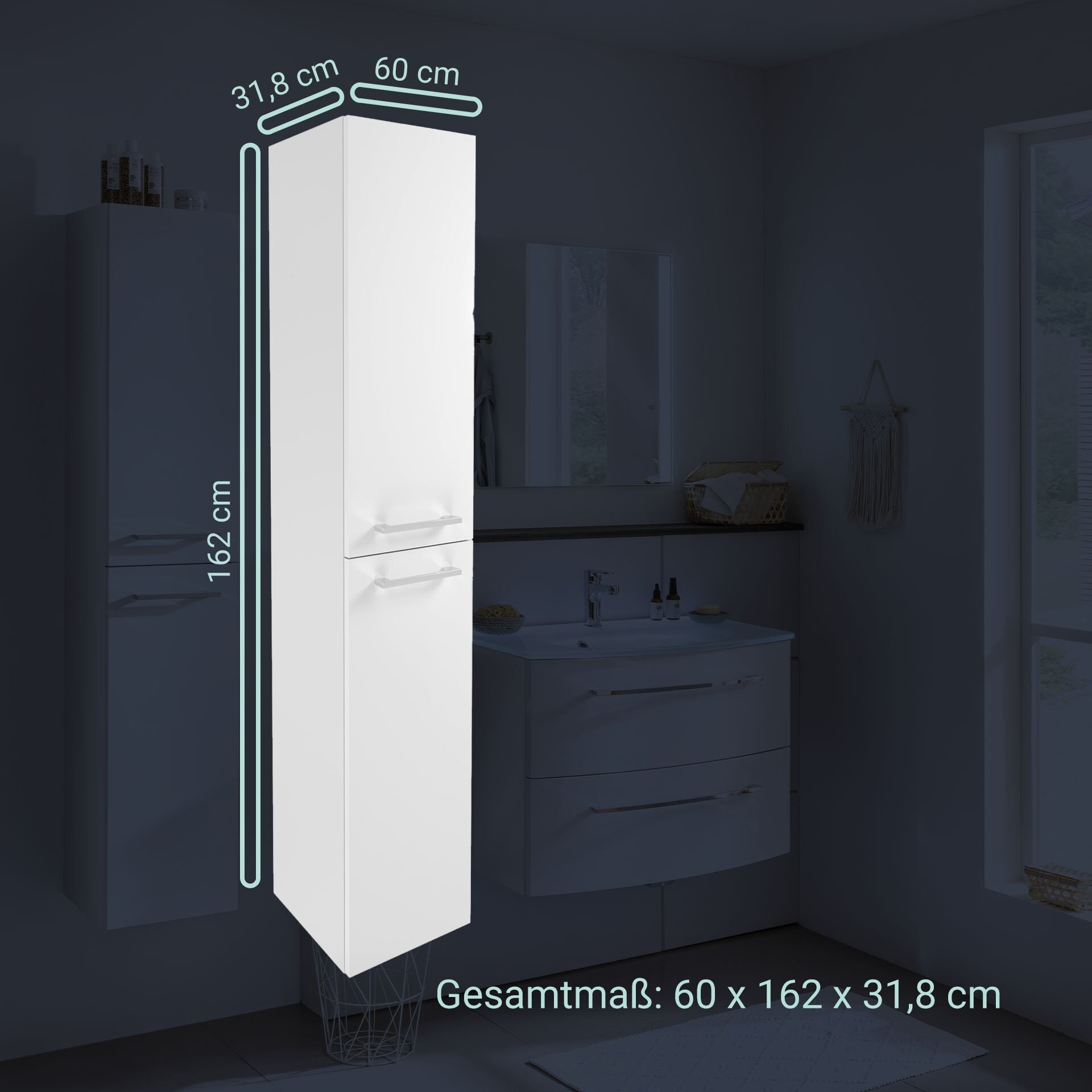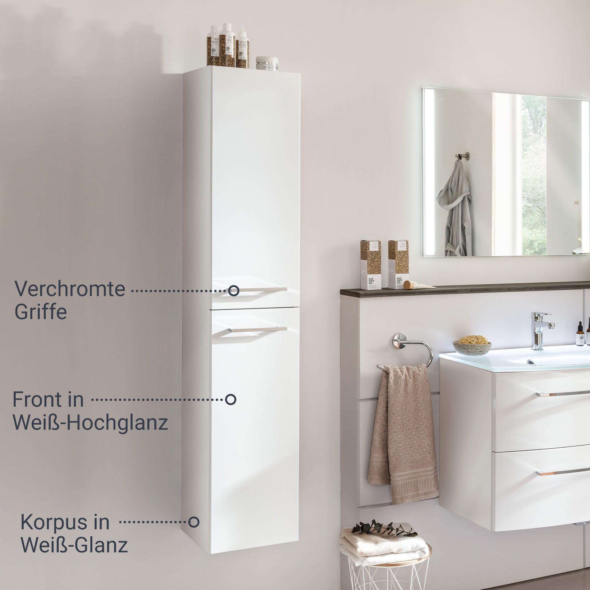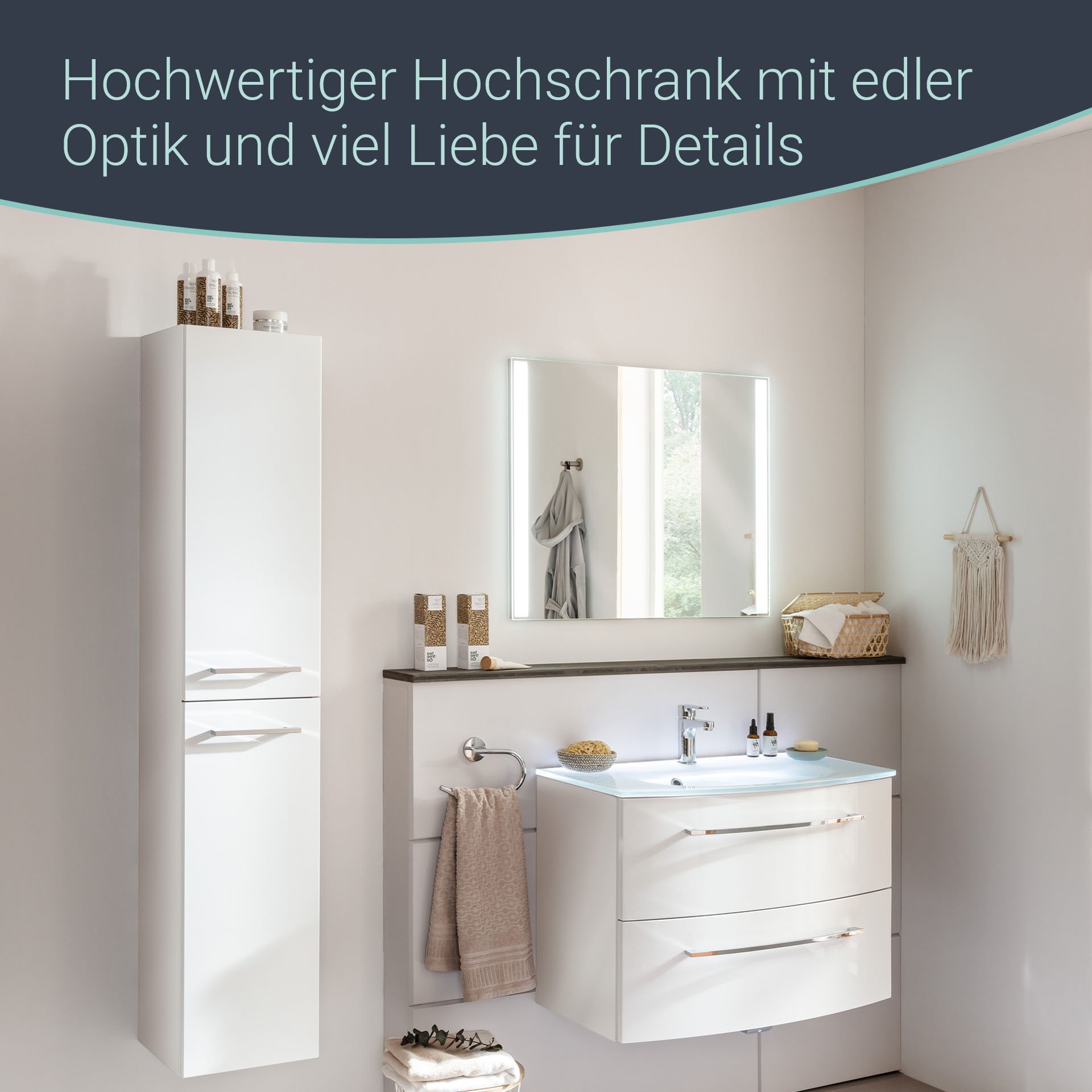 Schöne weiße Badmöbel gehören zu den Klassikern in deutschen Bädern. Hier kombiniert mit glänzendem Weiß für den Korpus und einer hochglänzenden weißen Front. Ein moderner Hochschrank von Fackelmann mit linkem Türanschlag! Das Stauraumwunder für Dein neues Badezimmer. Der Schrank aus der Serie VERONA von Fackelmann überzeugt durch seine klassische, zeitlose Gestaltung. Mit der praktischen Aufteilung im Inneren hast Du immer Zugriff auf alle Deine Badeaccessoires. Vier Glaseinlegeböden unterteilen den Innenraum und geben ihm Struktur. Zwei verchromte Stangengriffe veredeln die weiße hochglänzende Front und gestatten ein leichtes Öffnen und Schließen der Türen. Ein edler und zeitloser Badezimmerschrank für Dein Bad. Badmöbel von Fackelmann werden mit viel Liebe zum Detail in Deutschland hergestellt. Der Fackelmann VERONA Hochschrank 30 cm, links, Weiß Hochglanzist vormontiert und kann so schnell und einfach in Dein neues Badezimmer einziehen.