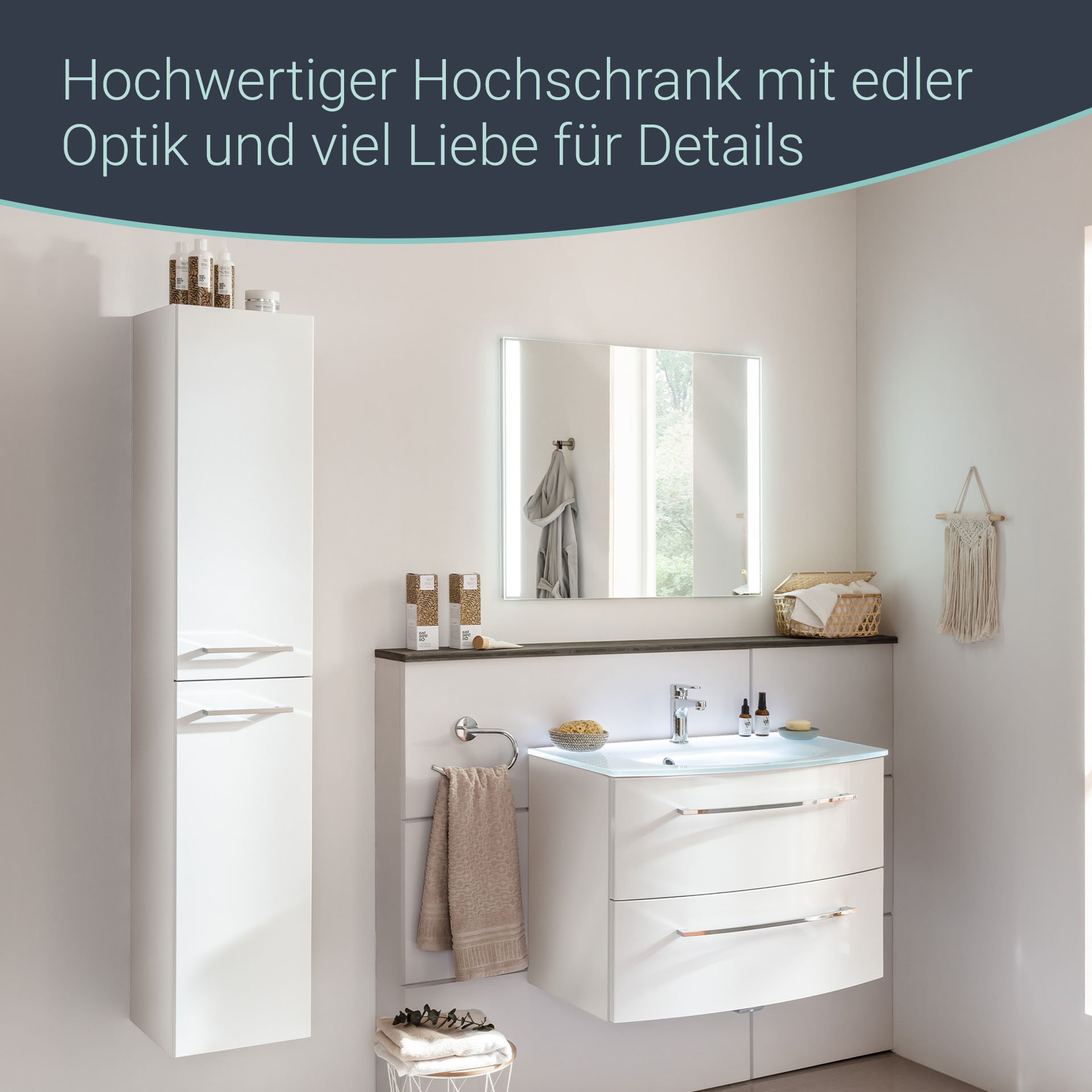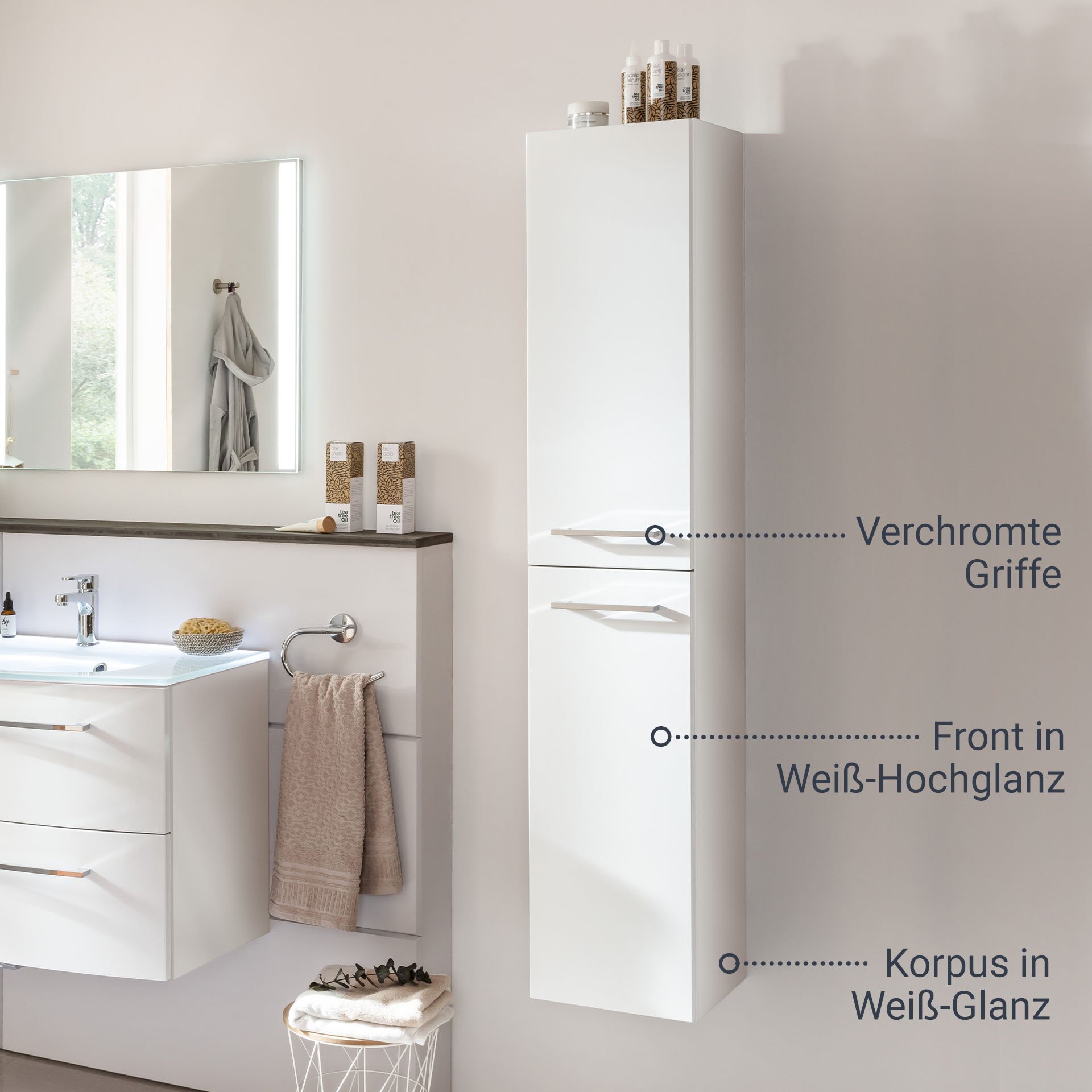Schöne weiße Badmöbel gehören zu den Klassikern in deutschen Bädern. Hier kombiniert mit glänzendem Weiß für den Korpus und einer hochglänzenden weißen Front. Ein moderner Hochschrank von Fackelmann mit rechtem Türanschlag! Das Stauraumwunder für Dein neues Badezimmer. Der Schrank aus der Serie VERONA von Fackelmann überzeugt durch seine klassische, zeitlose Gestaltung. Mit der praktischen Aufteilung im Inneren hast Du immer Zugriff auf alle Deine Badeaccessoires. Vier Glaseinlegeböden unterteilen den Innenraum und geben ihm Struktur. Zwei verchromte Stangengriffe veredeln die weiße hochglänzende Front und gestatten ein leichtes Öffnen und Schließen der Türen. Ein edler und zeitloser Badezimmerschrank für Dein Bad. Badmöbel von Fackelmann werden mit viel Liebe zum Detail in Deutschland hergestellt. Der Fackelmann VERONA Hochschrank 30 cm, rechts, Weiß Hochglanzist vormontiert und kann so schnell und einfach in Dein neues Badezimmer einziehen.