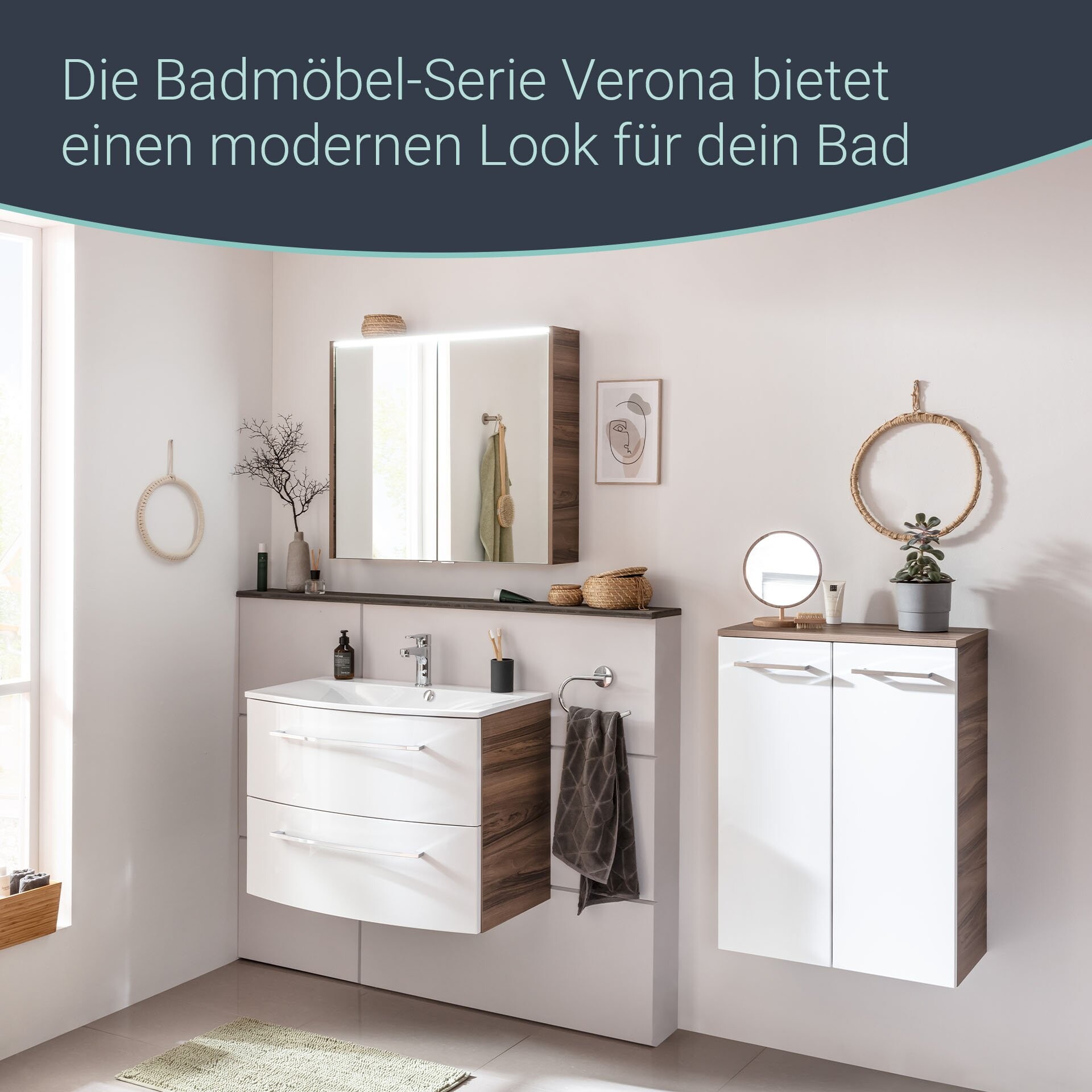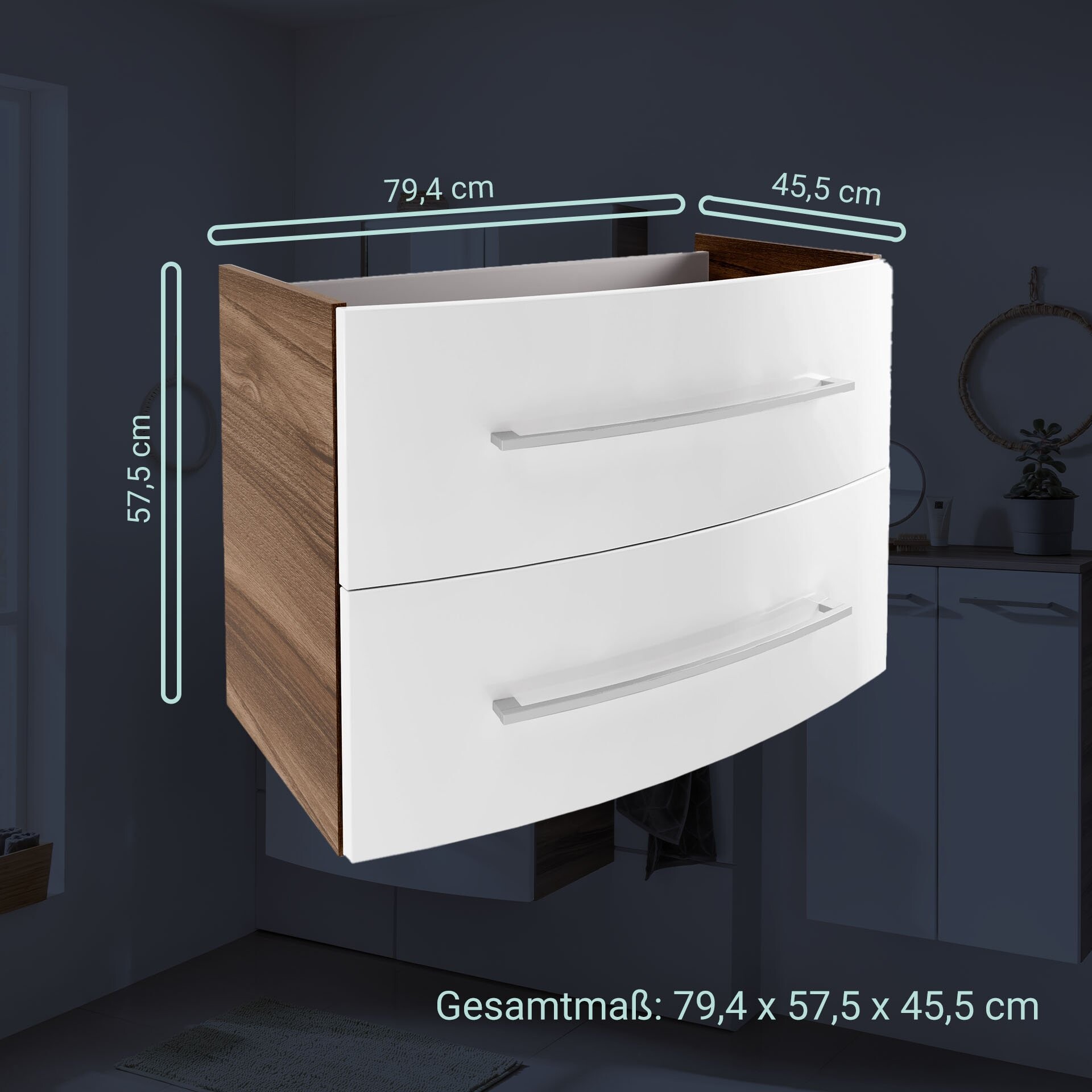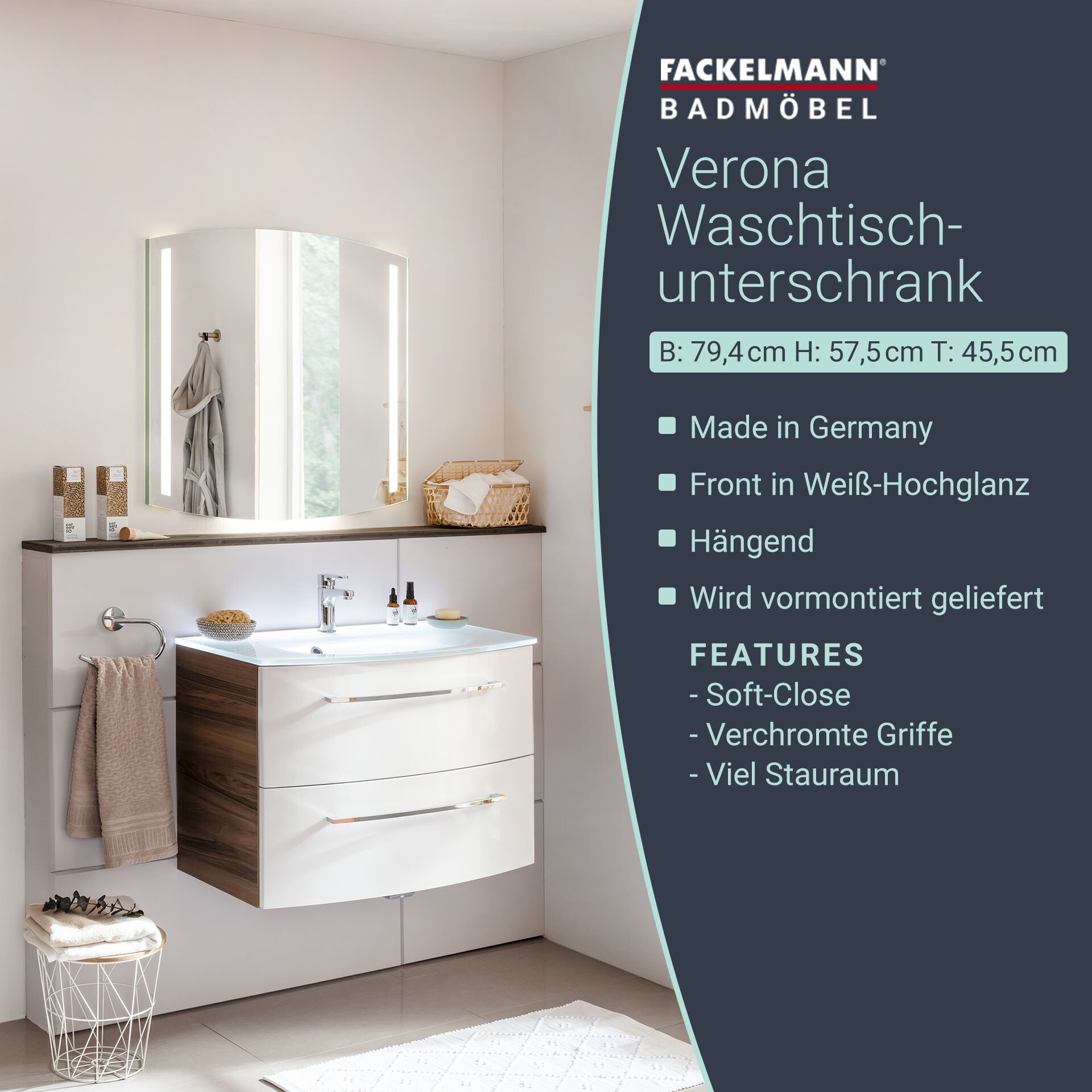 Fackelmann VERONA Waschbeckenunterschrank 79,4 cm breit, Braun Dunkel/Weiß Hochglanz